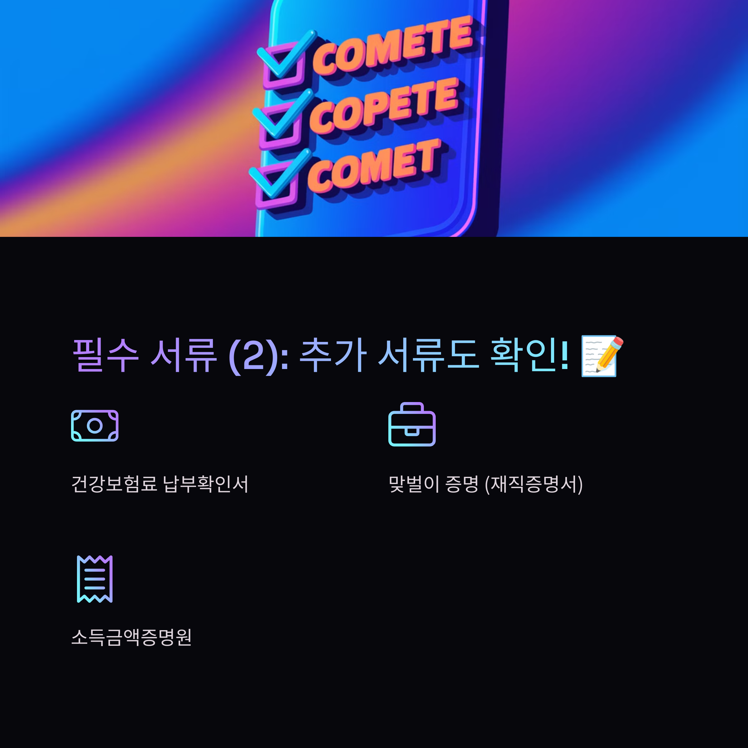 - 부모 소득 증빙 서류 (건강보험료 납부 확인서 또는 근로소득 원천징수영수증)