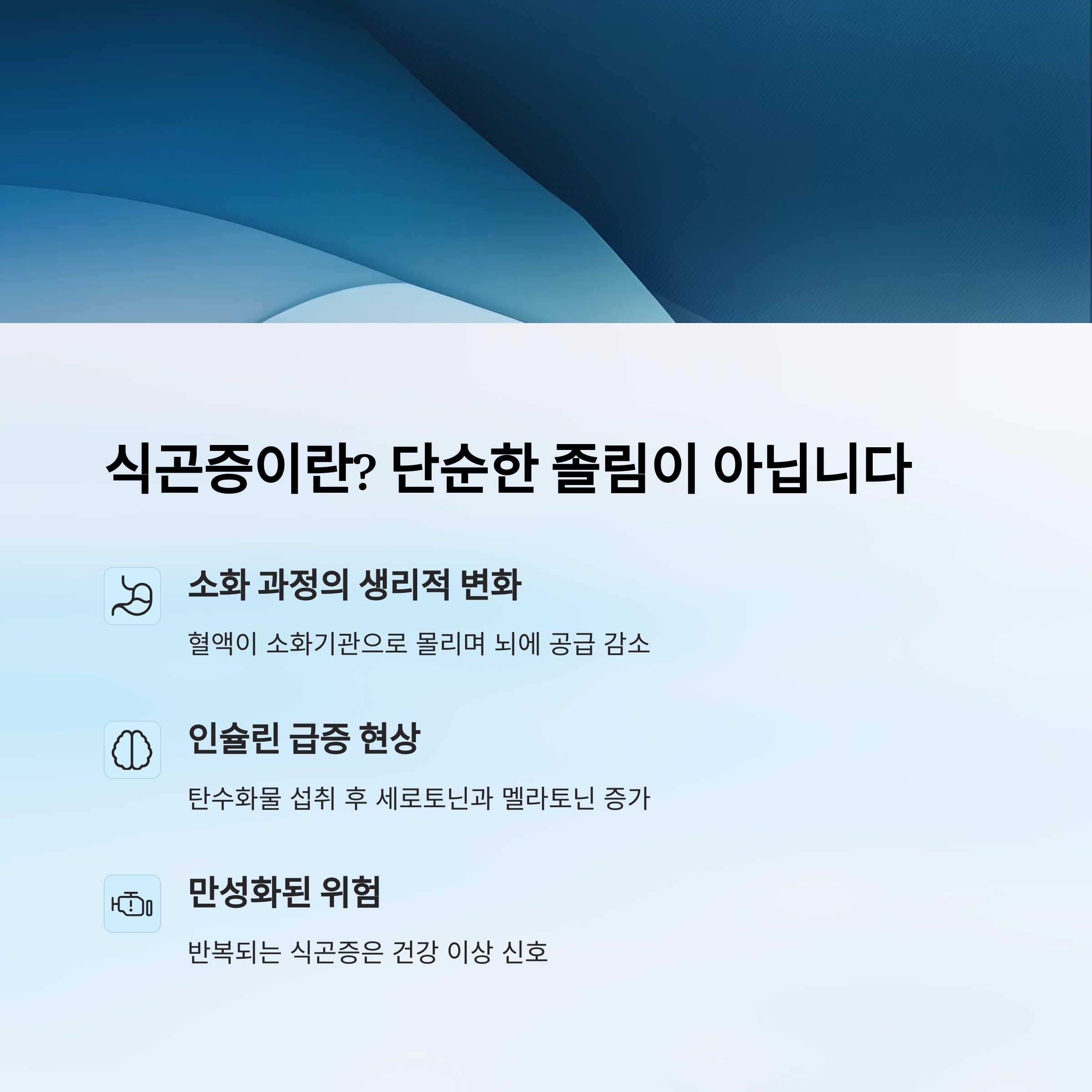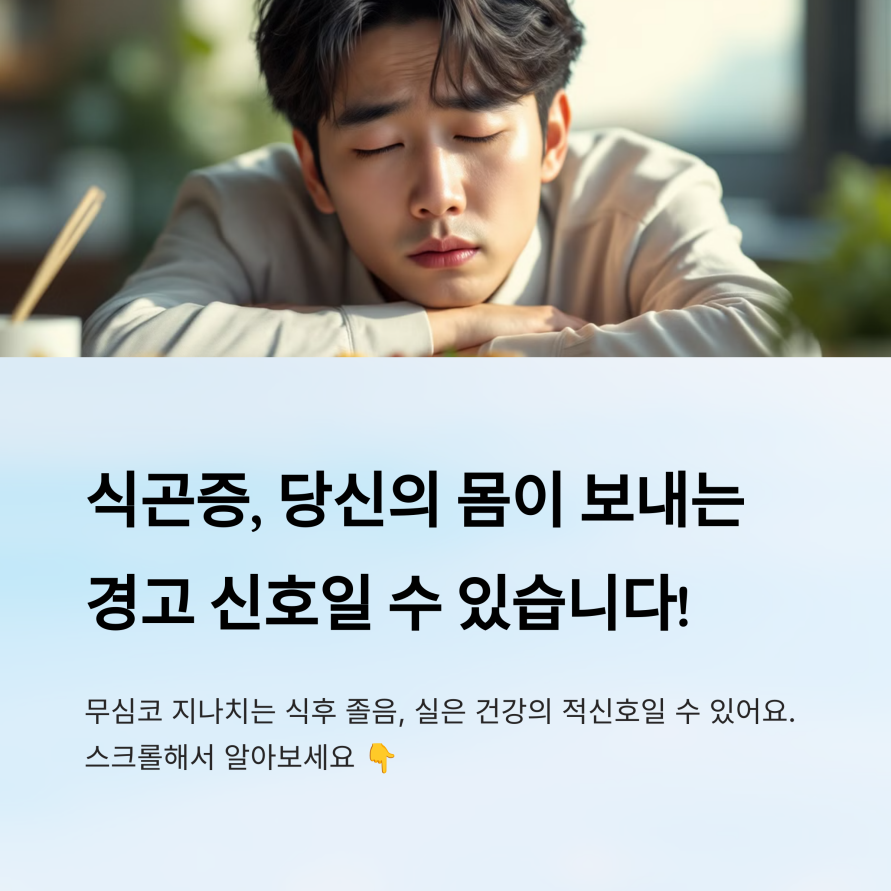 식사후 졸음이 몰려오는 경험, 누구나 한 번쯤 겪어봤을 거예요. 그런데 이 졸음, 단순한 '식곤증'이라고 넘기면 놓치는 중요한 건강 신호가 될 수도 있어요. 실제로 식곤증은 우리 몸 내부 장기와 대사작용이 보내는 신호일 수 있답니다.