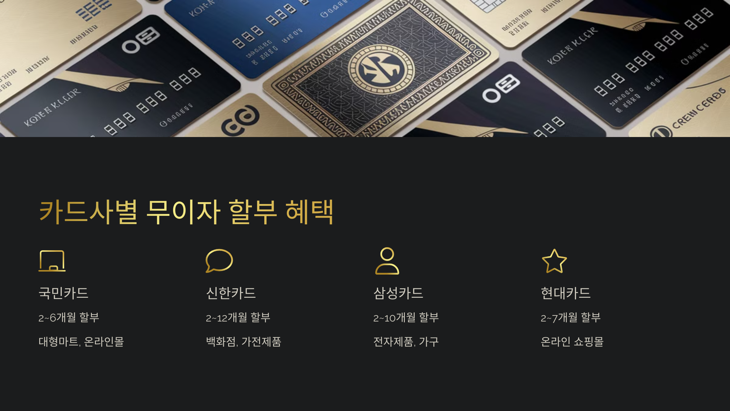 ✔ **온라인 쇼핑이 많다면?** → 현대카드 추천 ✔ **고가 가전제품을 할부로 구매할 계획이라면?** → 삼성카드, 신한카드 추천 ✔ **포인트 적립과 무이자 할부를 동시에 받고 싶다면?** → 신한카드, 현대카드 추천