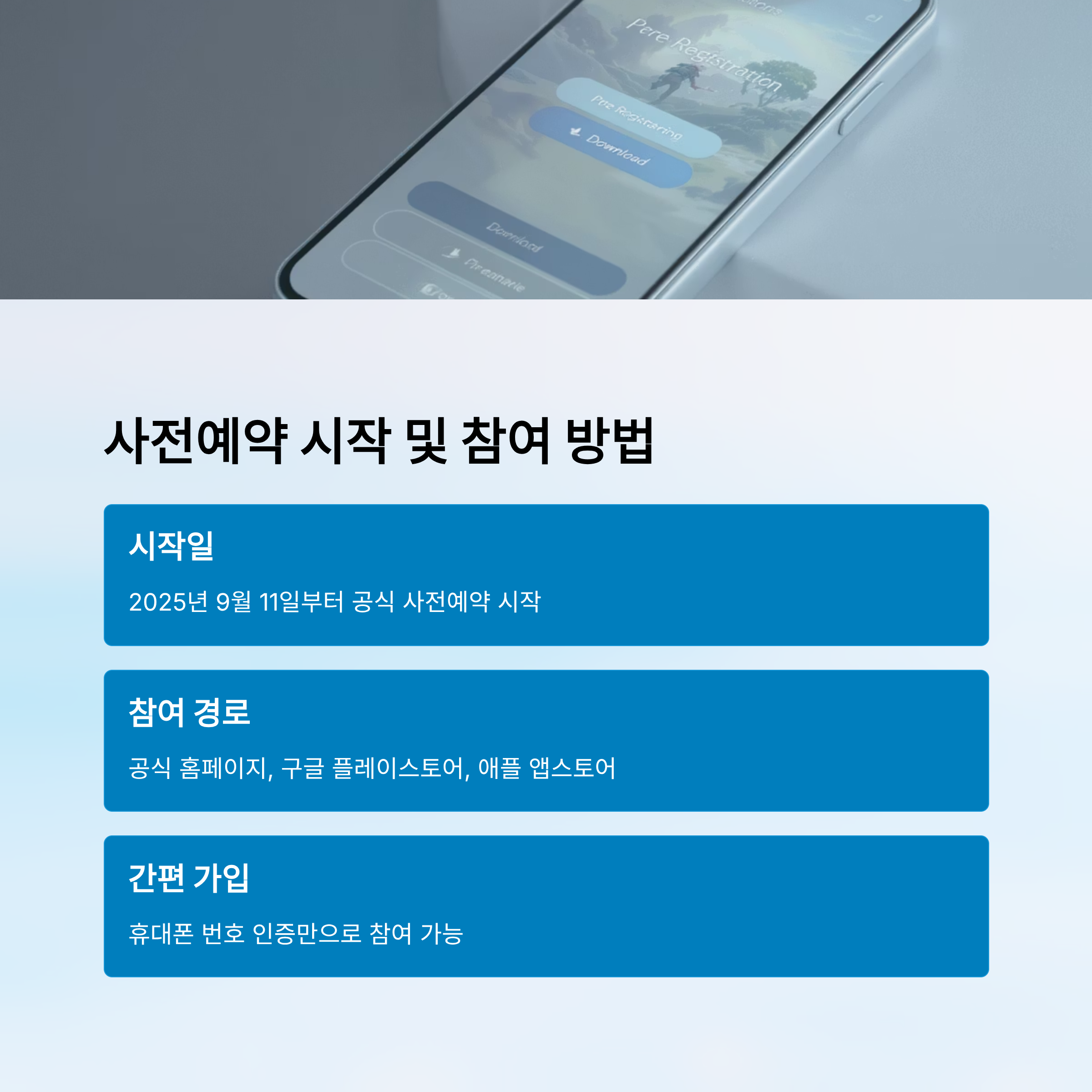 사전예약은 별도의 회원가입 없이도 휴대폰 번호 인증만으로 가능하며, 이후 게임 정식 출시일에 맞춰 보상이 자동으로 지급돼요. 이 부분은 유저 입장에서 매우 편리하죠!