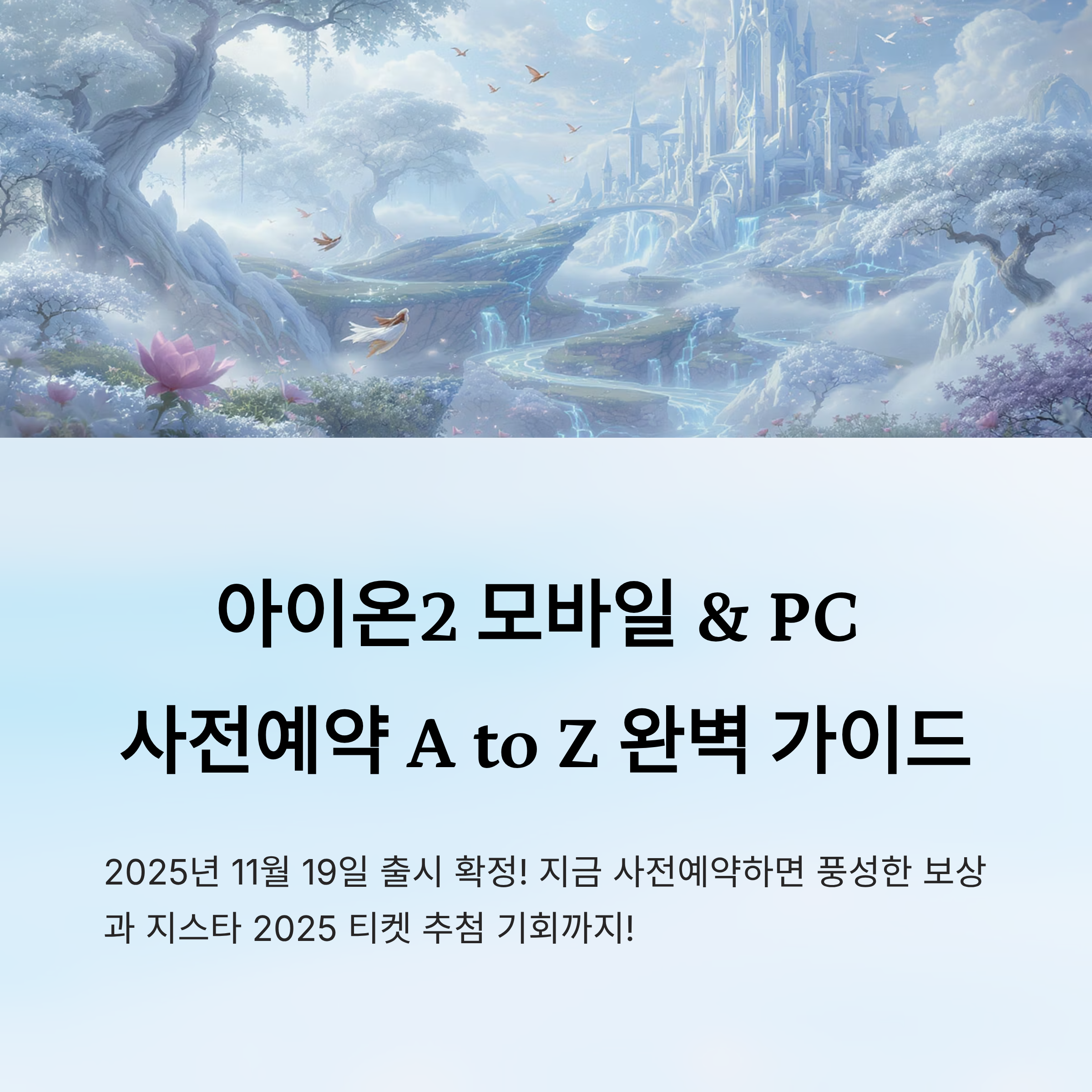 아이온2의 사전예약이 드디어 시작되었어요! 공식 출시일은 2025년 11월 19일로 확정되었고, 지금 바로 사전예약에 참여하면 풍성한 보상과 지스타 2025 티켓 추첨 기회도 얻을 수 있답니다. 😍