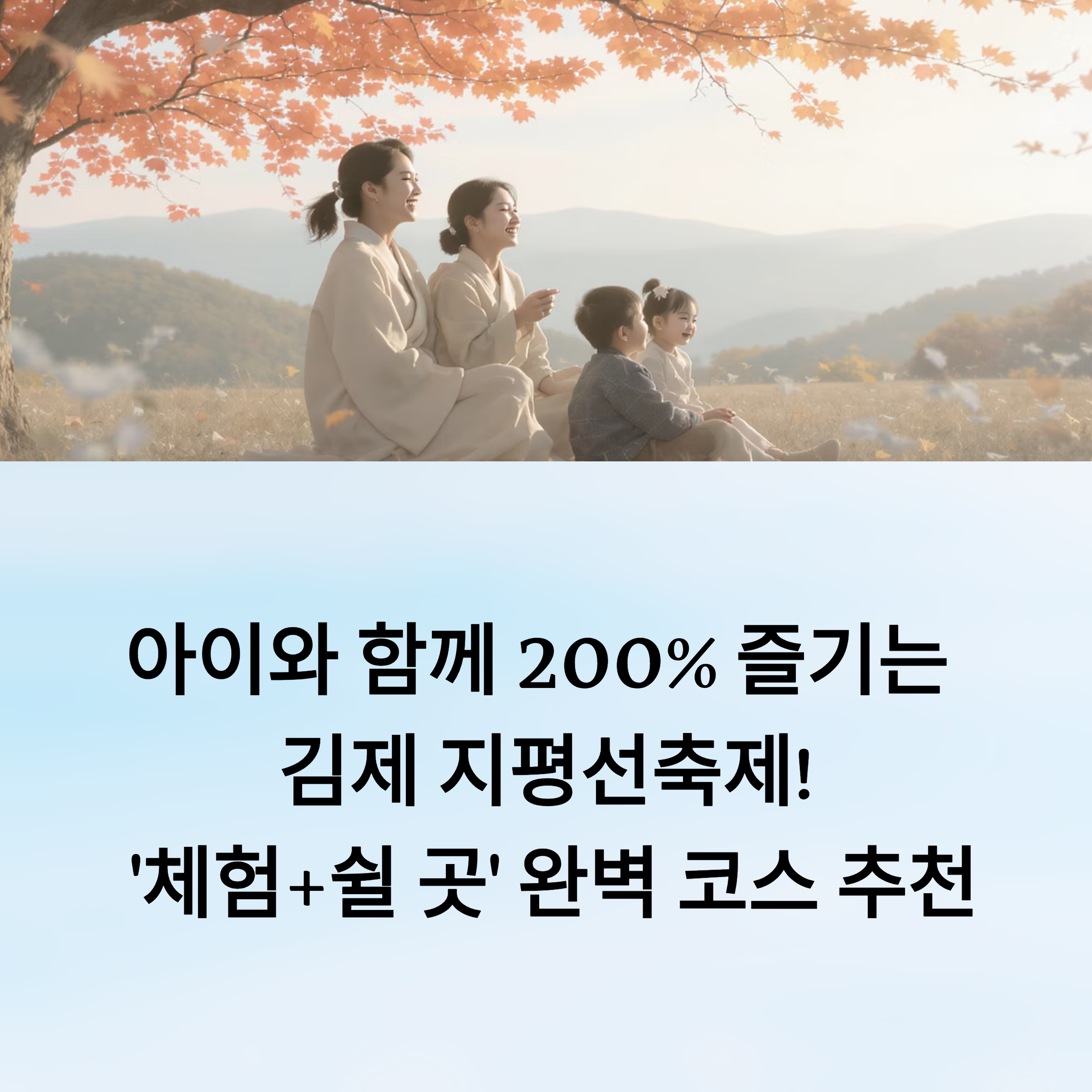 이제 본격적으로, 우리 가족이 더 편하고 즐겁게 축제를 즐길 수 있도록 '체험 + 쉴 곳'이 모두 포함된 가성비 만점 코스를 알려드릴게요! 🚀