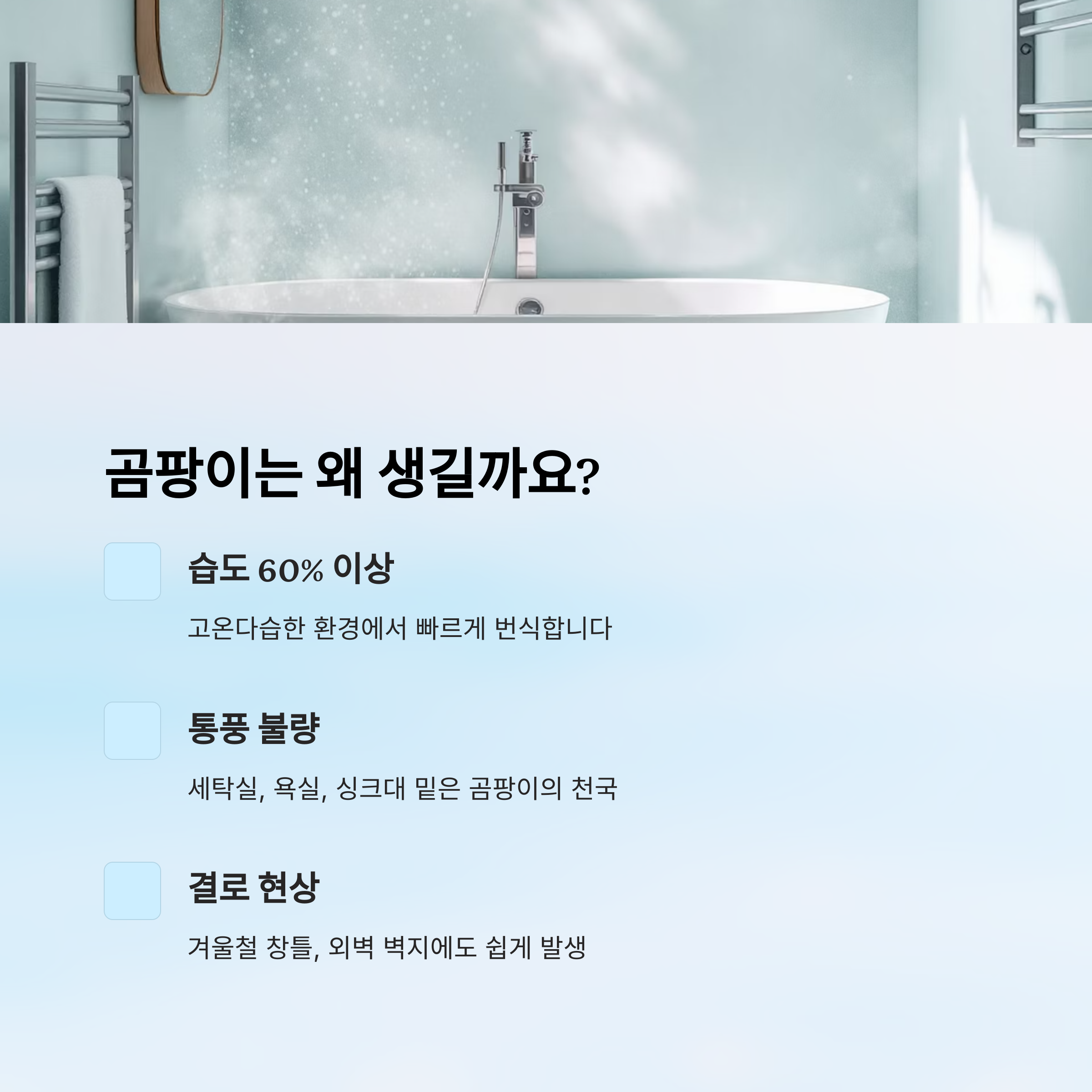 집 안 곰팡이는 단순한 보기 싫은 얼룩이 아니라 건강까지 해치는 위험 요소예요. 곰팡이 포자는 알레르기, 천식, 피부염 같은 다양한 질환을 유발할 수 있어서 초기에 확실하게 제거하는 게 정