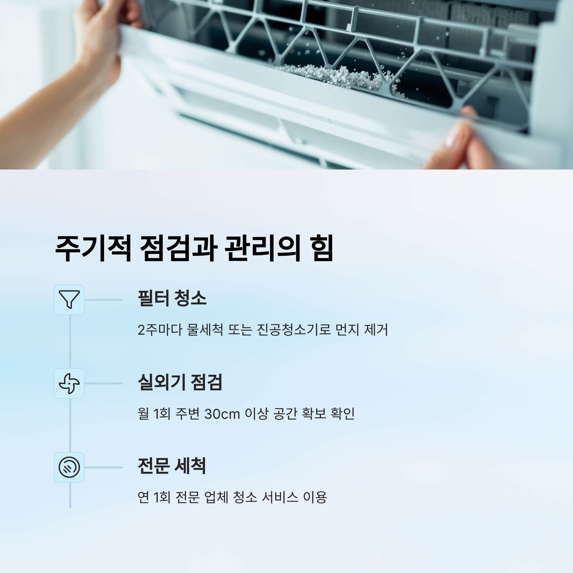 관리를 소홀히 하면 전기요금도 올라가고, 냉방 효과도 떨어지니까 꼭 챙겨주세요!