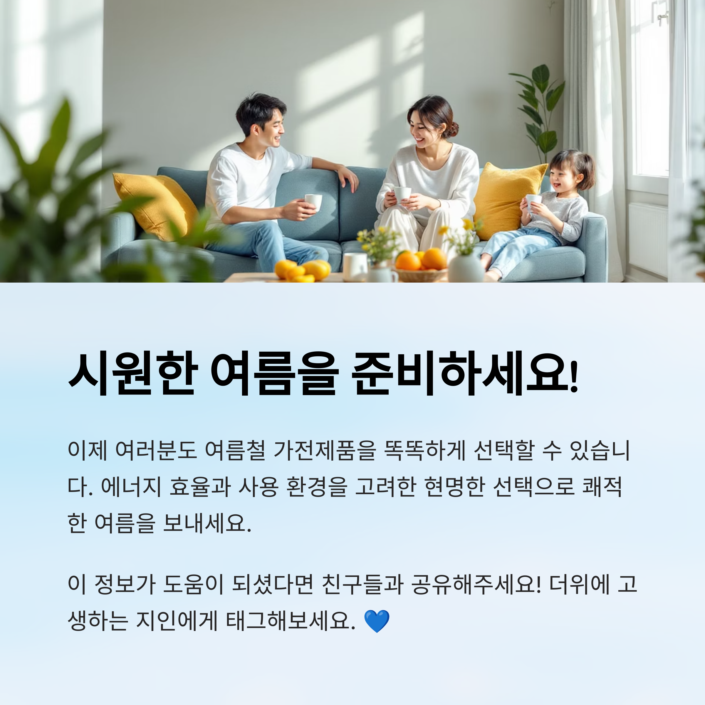 여름 가전은 단순한 시원함을 넘어 전기요금, 사용 공간, 유지 관리 등 여러 요소를 함께 고려해야 해요. 그래서 오늘은 2025년 기준으로 여름철 가전제품을 스마트하게 선택할 수 있도록 분야별로 자세하게 정리해볼게요! 🧊