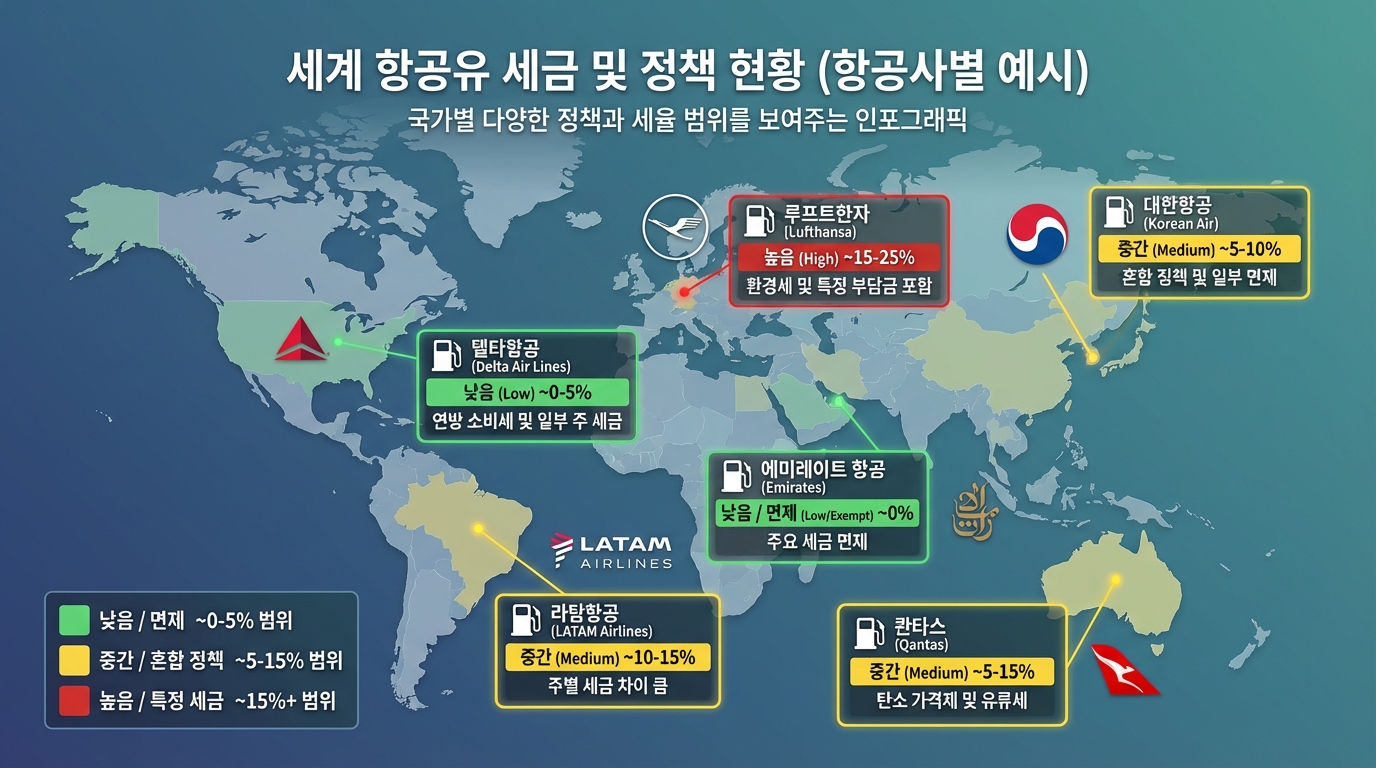 참고 자료: 국제항공운송협회(IATA) 유가 모니터링, 각 항공사 유류세 공지사항 (2026)