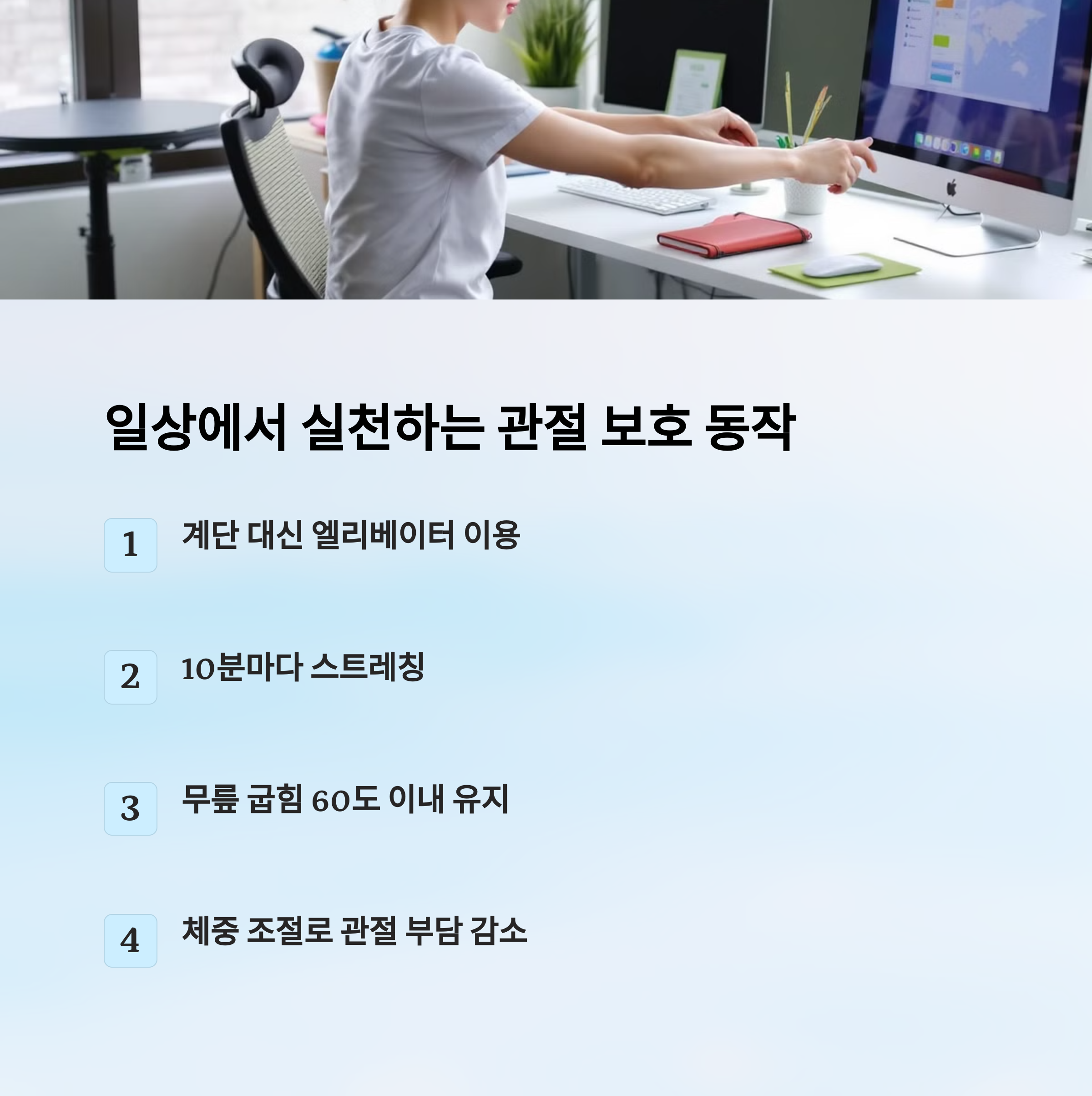 관절 건강이란 단순히 운동을 많이 한다고 지켜지는 게 아니에요. 특히 연골은 한 번 손상되면 회복이 어렵기 때문에 '예방'이 정말 중요해요.