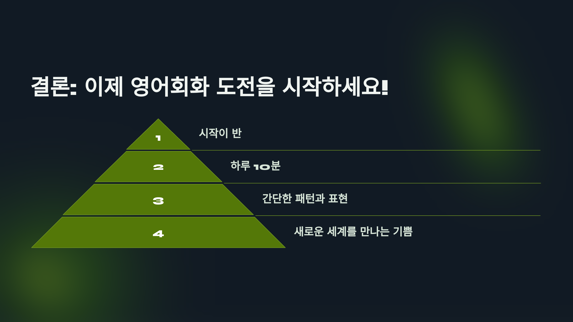 처음엔 간단한 패턴만 반복했지만, 조금씩 자신감이 붙으면서 더 어려운 표현도 시도하게 되었습니다. 여러분도 작은 성공을 쌓아가다 보면 어느새 영어로 대화하는 자신을 발견하게 될 거예요! 😊