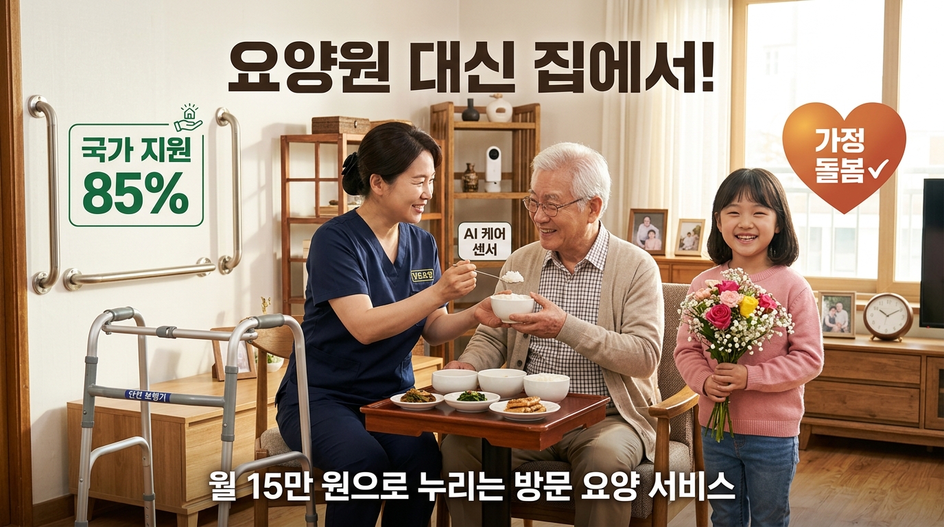 [요양원 대신 집에서 노후를?] 75세 어르신이 낯선 시설이 아닌 정든 집에서 전문 요양보호사의 케어를 받을 수 있는 '방운요양 서비스'. 2026년 업데이트된 등급 판정 기준부터 본인부담금 감면 혜택까지, 부모님을 위한 가장 현명한 선택을 위해 반드시 알아야 할 핵심 정보를 담았습니다.