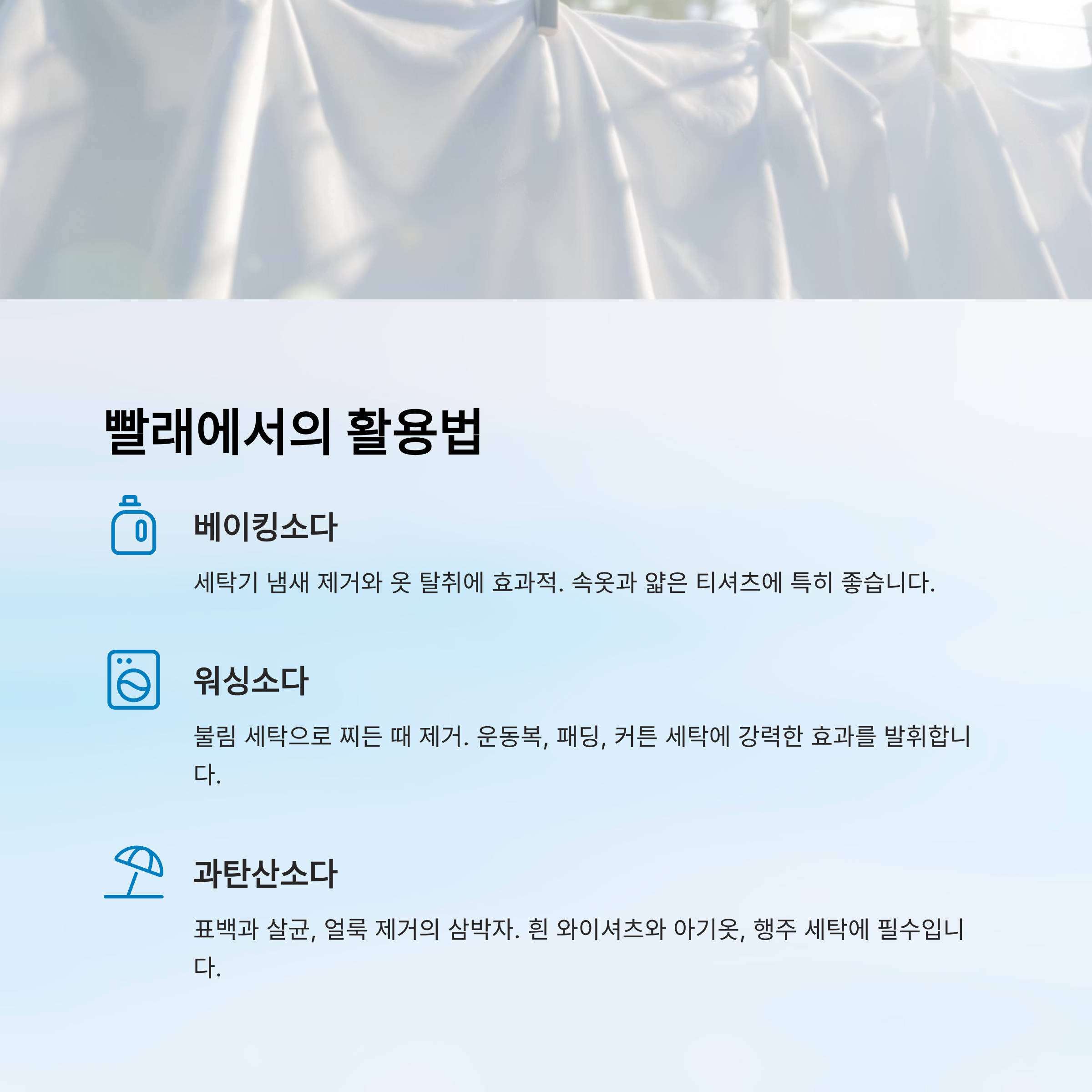 이처럼 활용법을 이해하고 상황별로 응용하면, 세탁 후 옷의 상태가 확연히 달라져요. 세제와 소다를 함께 쓰는 습관만으로도 빨래의 결과가 달라지고, 옷의 수명까지 늘릴 수 있답니다. 🌟