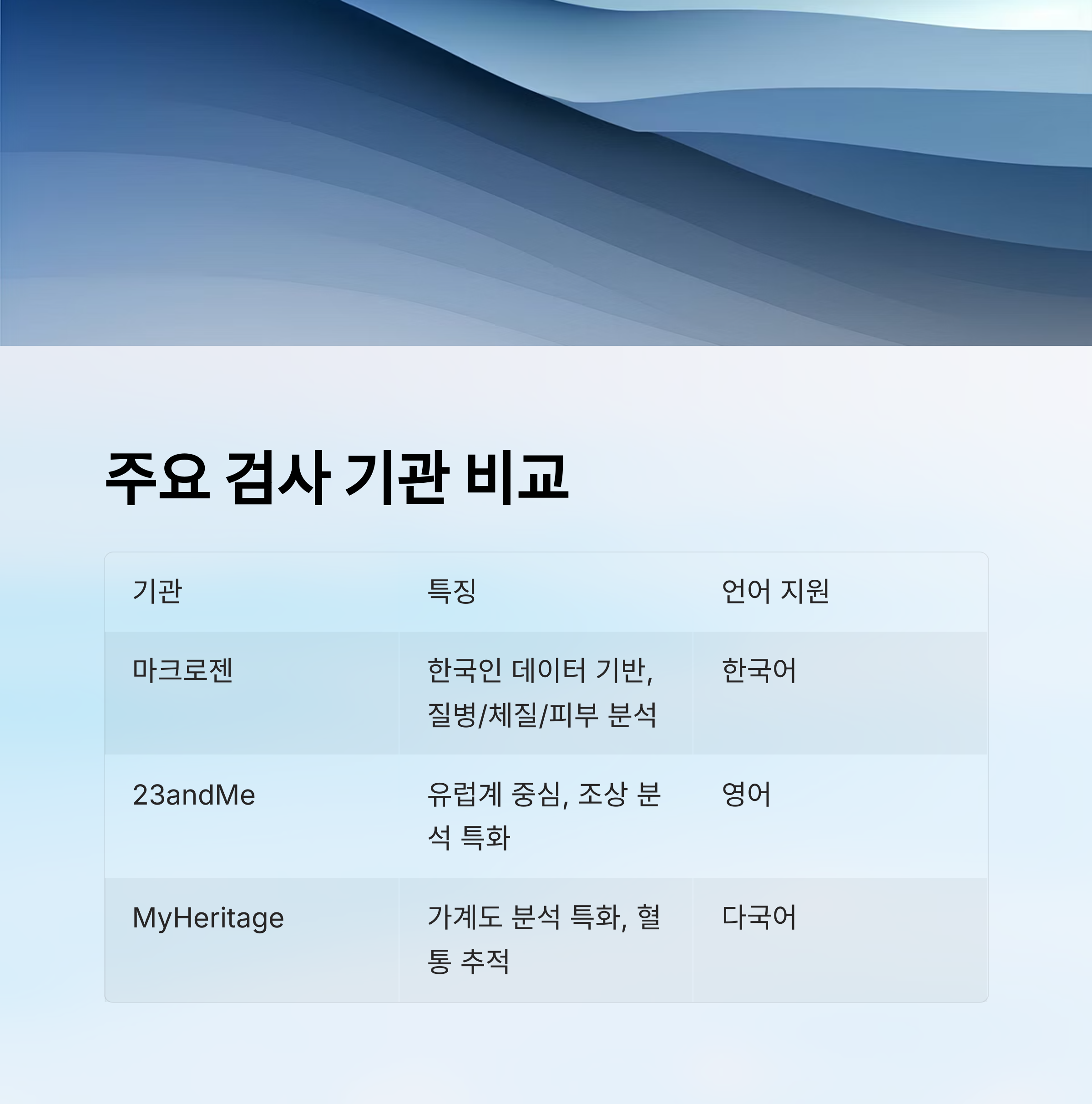 해외 업체는 혈통 분석, 유럽/미국 기반 질병 예측 정보에 강점이 있어요. 특히 23andMe는 질병 유전자 외에도 조상 추적, 인종 분석 등 다양한 정보를 제공하는 게 특징이에요. 단, 한국어 지원이 부족한 점은 단점일 수 있어요.