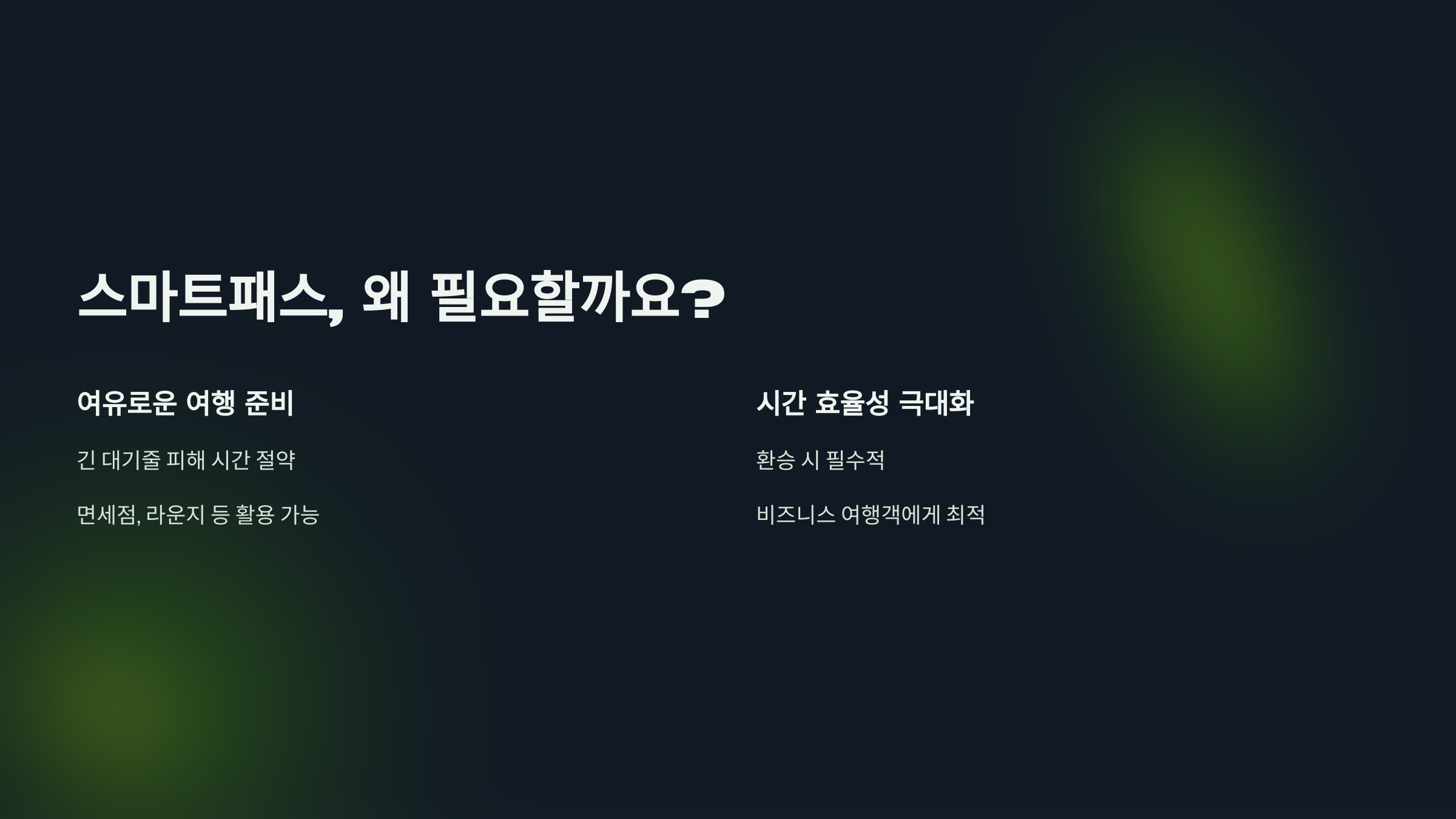 이 글을 통해 스마트패스를 쉽게 이해하고 직접 활용해 보세요. 공항에서의 불필요한 스트레스를 줄이고, 여행의 즐거움을 한껏 높이시길 바랍니다. 💕
