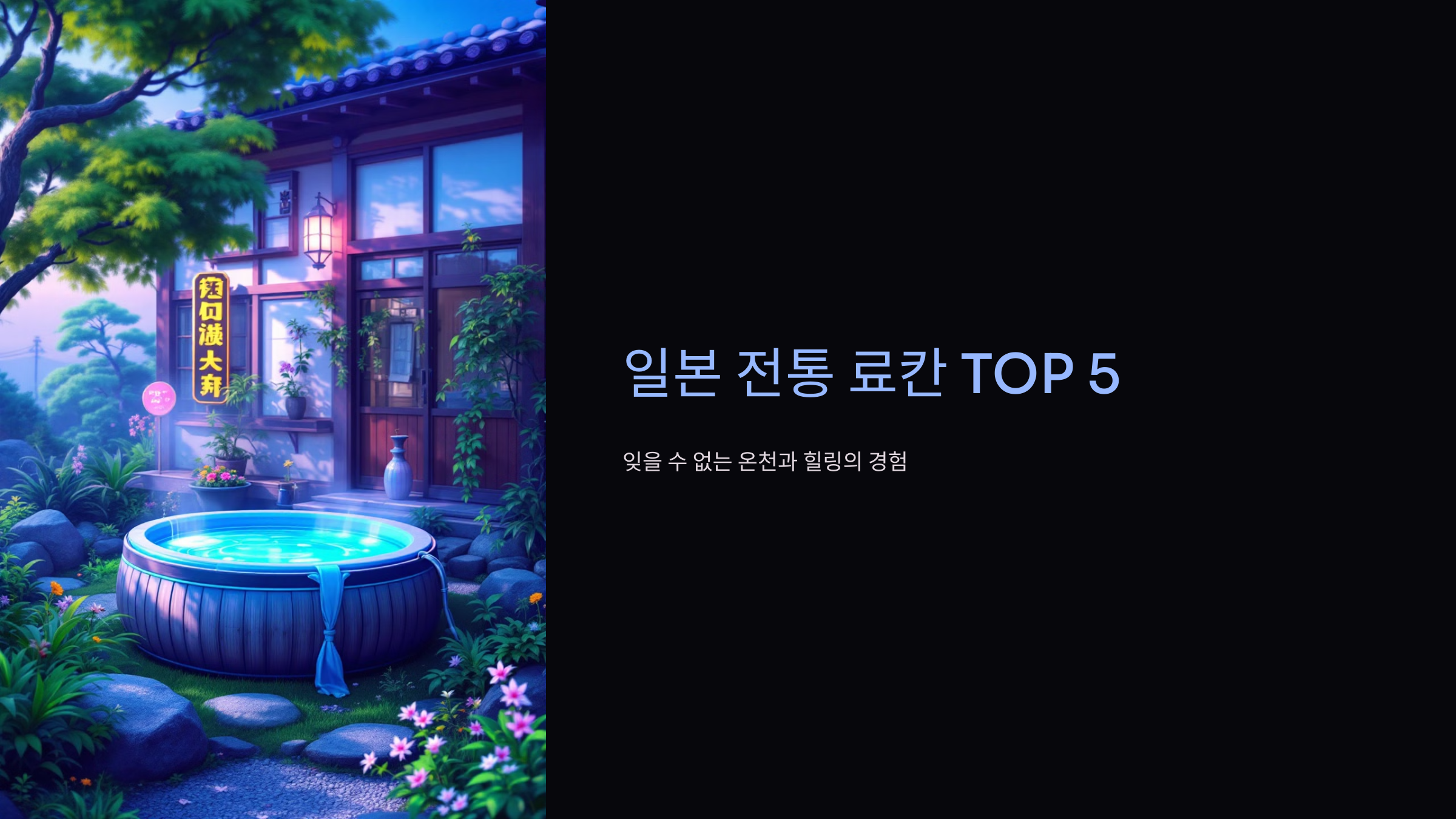일본 여행 중 꼭 방문해야 할 전통 료칸 5곳을 선정했습니다. 각 료칸은 독특한 매력을 자랑하며 특별한 경험을 제공합니다.