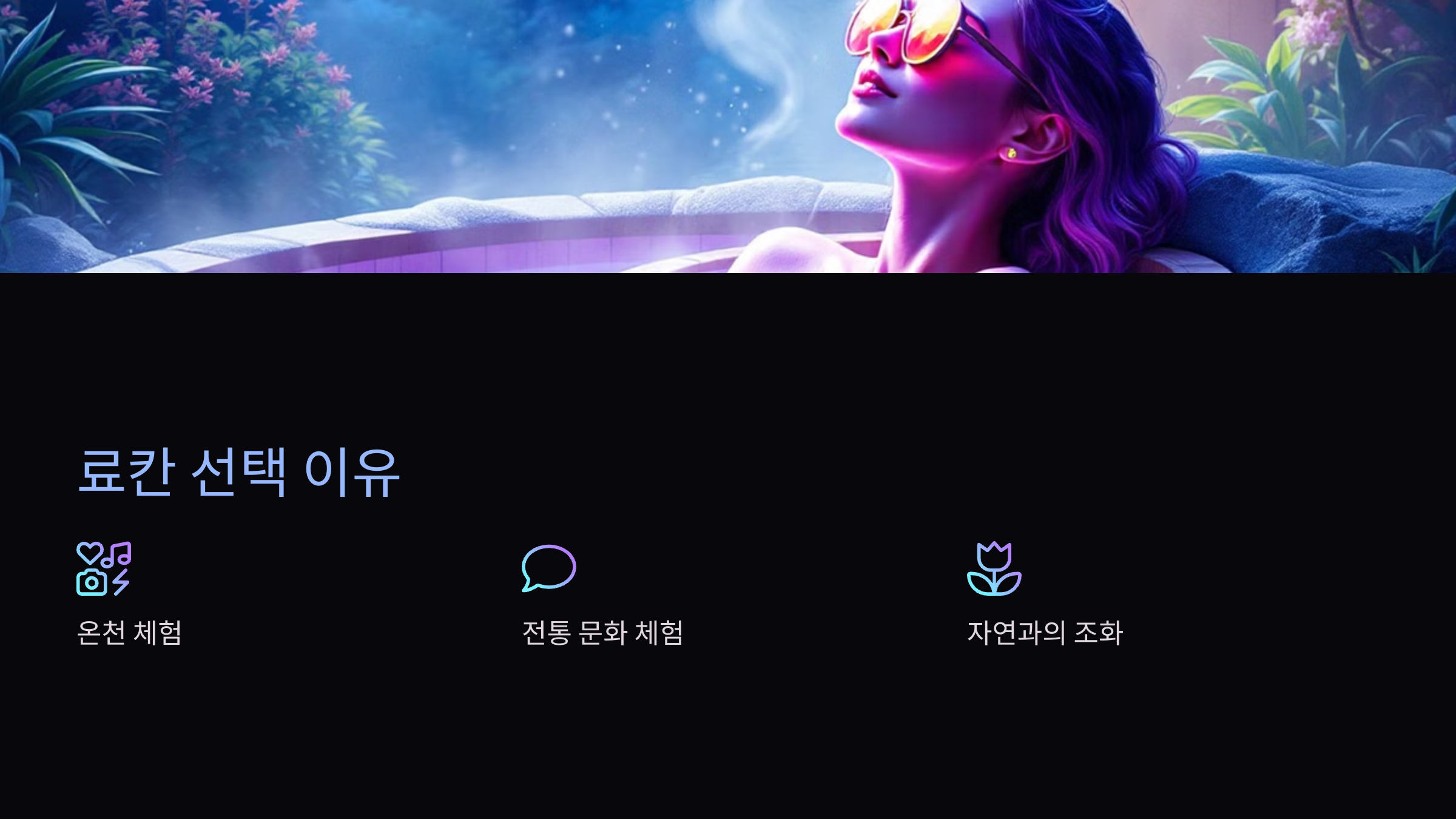 6. **치유의 경험**: 천연 온천과 전통 요리는 신체적, 정신적 피로를 풀어주는 효과가 있습니다.