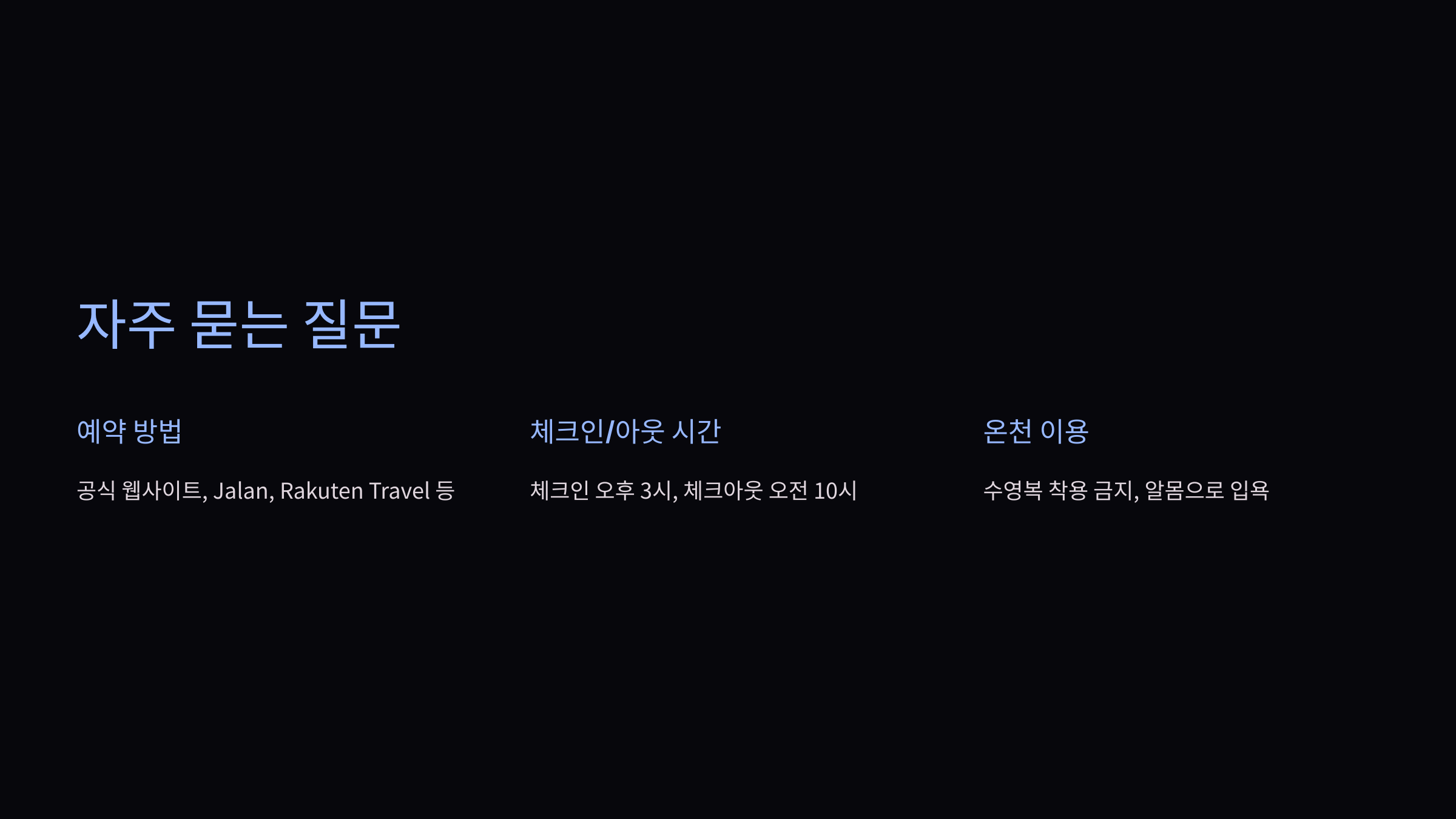 다음으로 료칸 예약 팁과 절차를 알아보겠습니다.