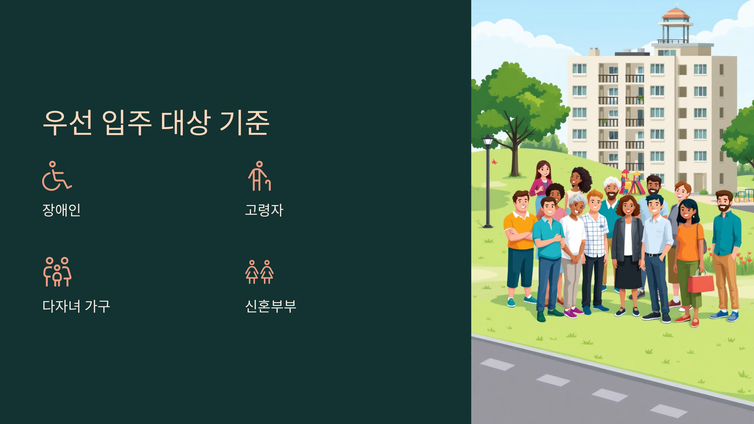 1. 장애인, 고령자, 다자녀 가구가 우선 대상입니다.