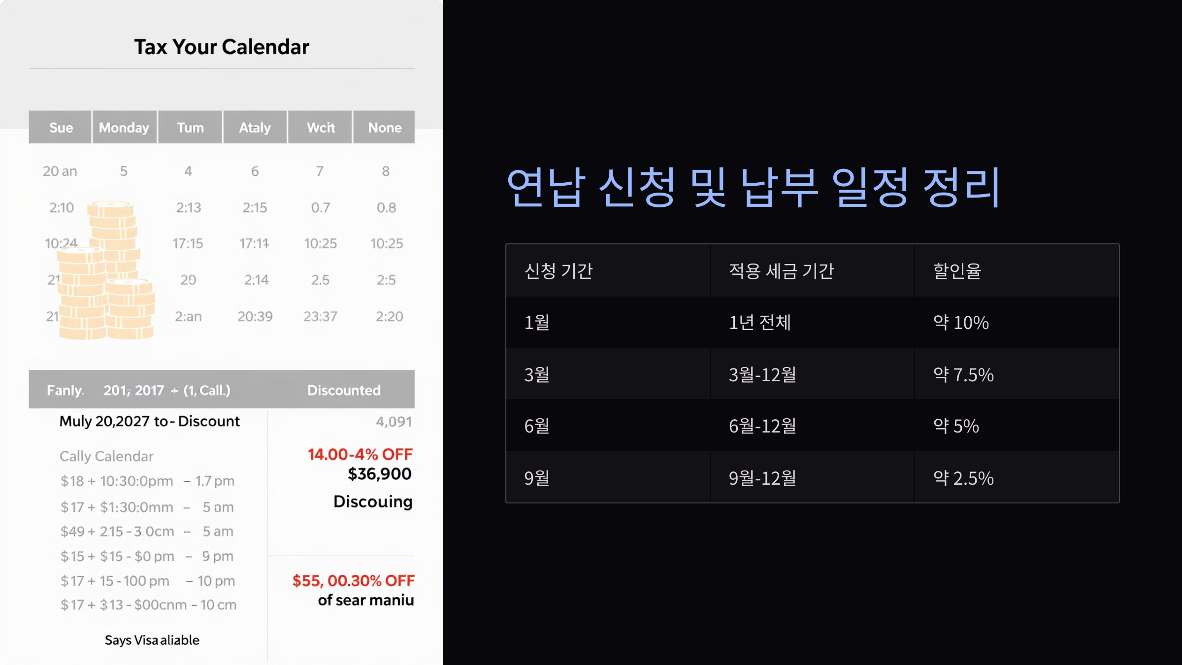| 신청 기간 | 적용 세금 기간 | 할인율 |
