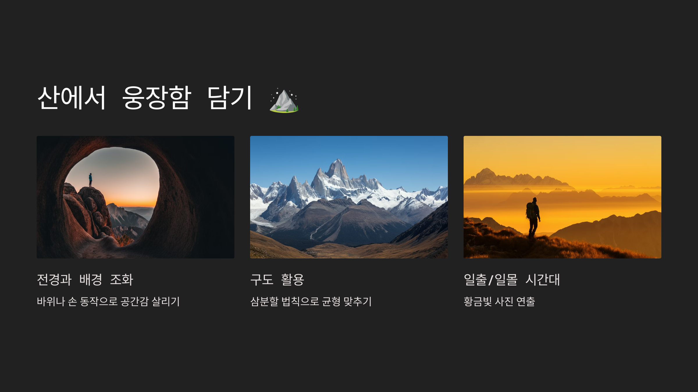 1. 산에서 웅장함을 담아내는 법 ⛰️