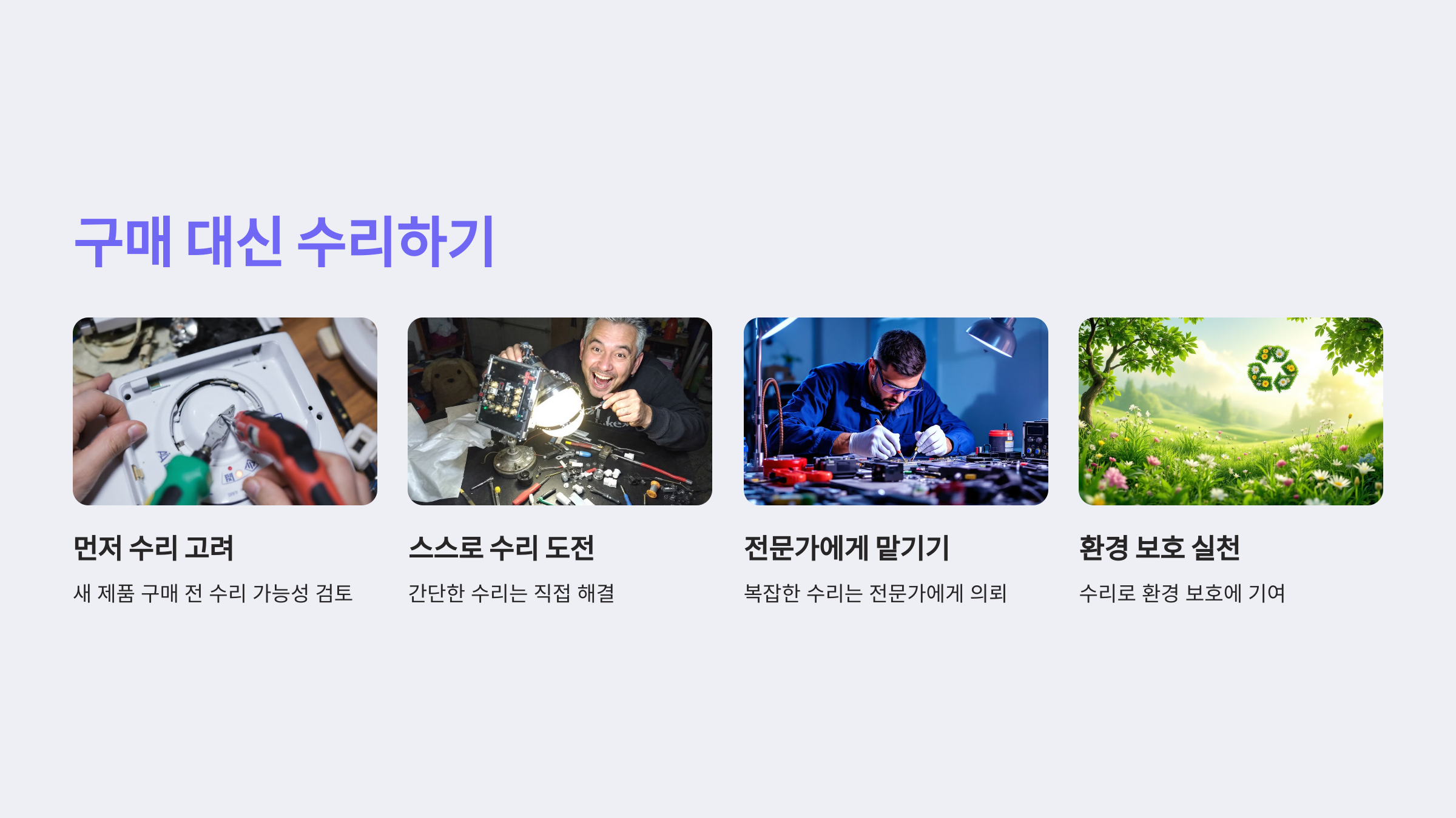 수리를 통해 물건의 수명을 늘리는 것도 환경 보호에 기여합니다.