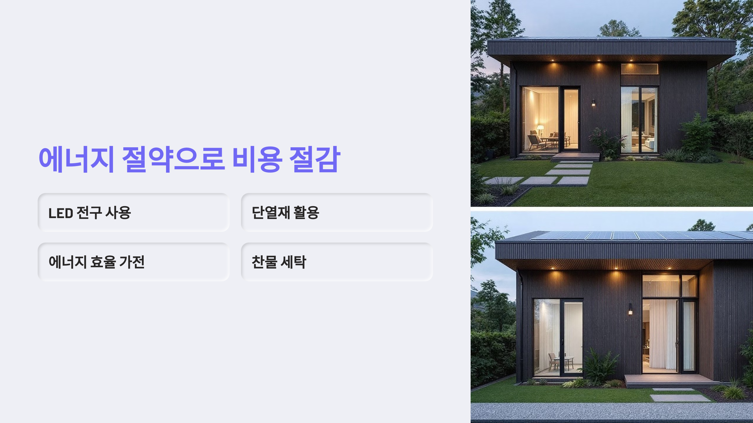 전기와 가스 사용량을 줄이는 것은 바로 비용 절약으로 이어집니다.