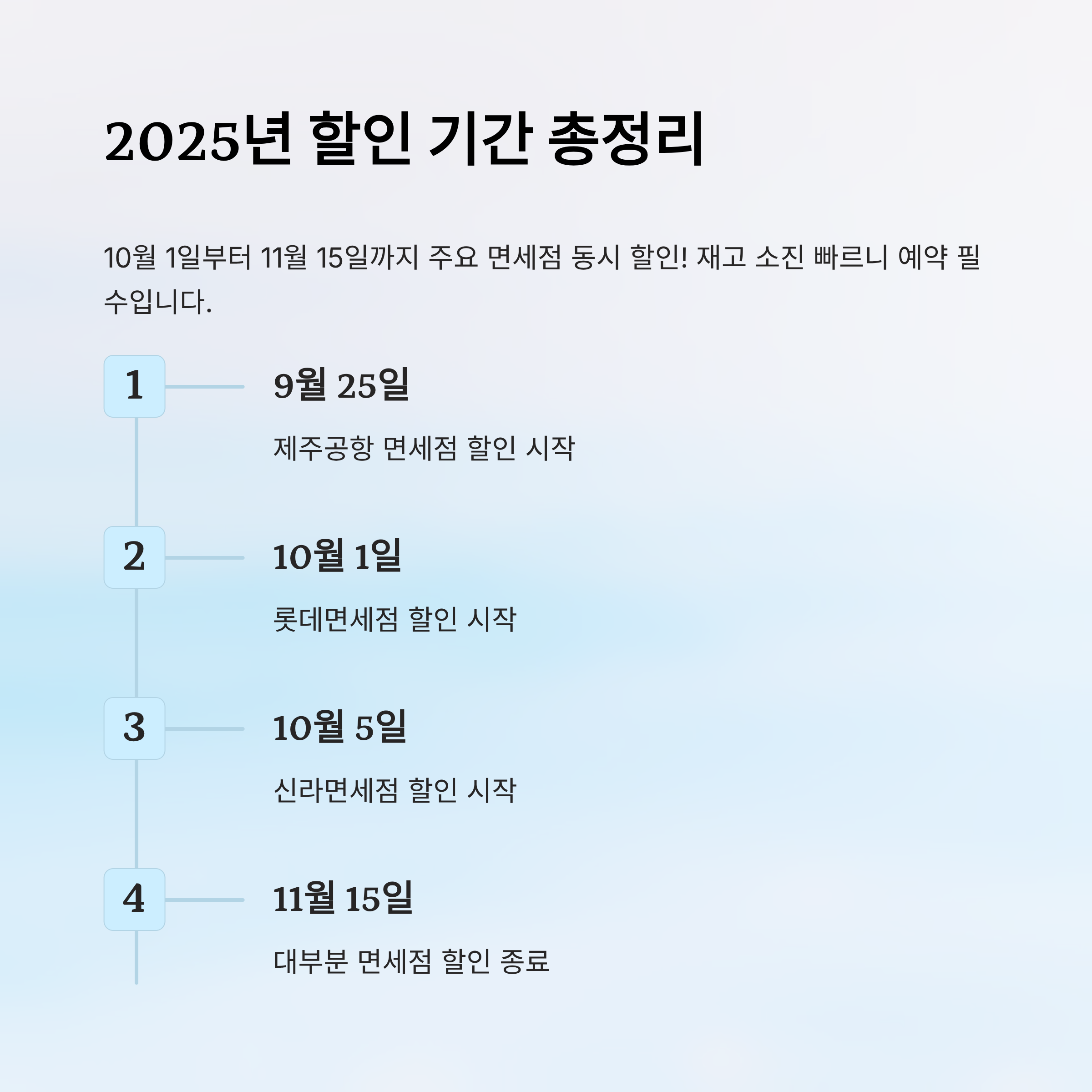 📌 정보 제공 면책 안내: 본 콘텐츠는 2025년 10월 기준 정보를 바탕으로 작성되었으며, 면세점 정책, 할인율, 재고, 행사 내용은 각 면세점 상황에 따라 사전 고지 없이 변경될 수 있어요. 구매 전 반드시 공식 홈페이지 또는 고객센터를 통해 확인하는 것을 추천드려요.