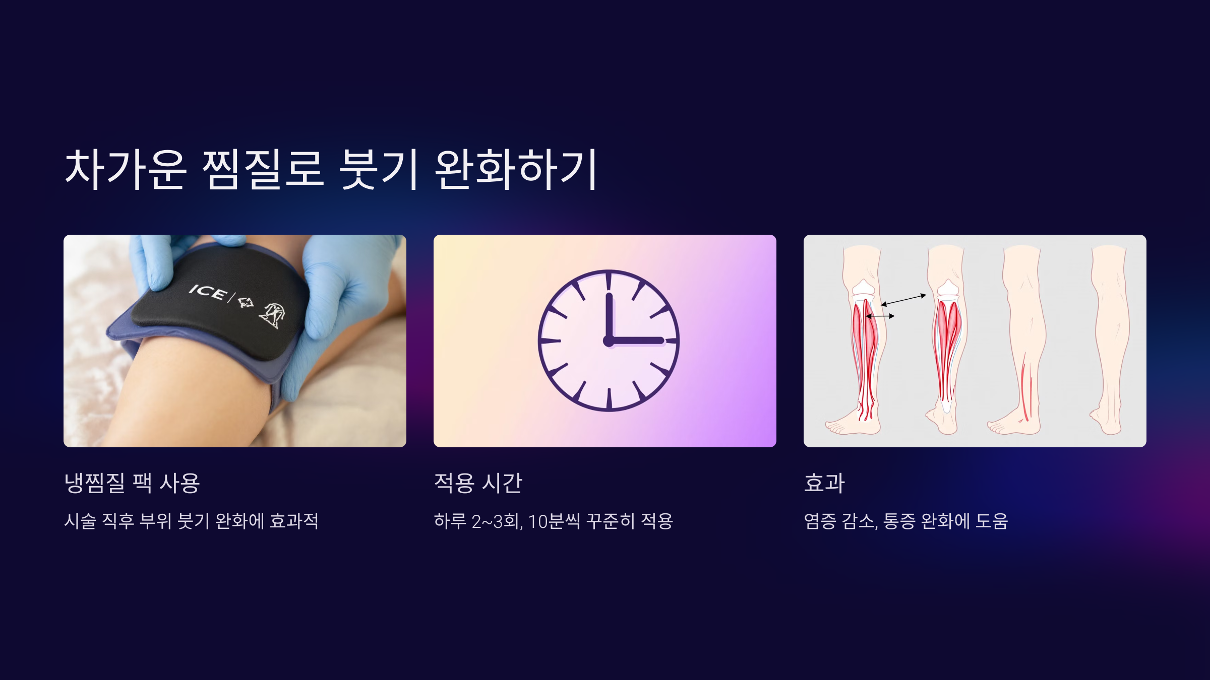 붓기를 줄이기 위해서는 시술 후 첫 48시간이 중요합니다.