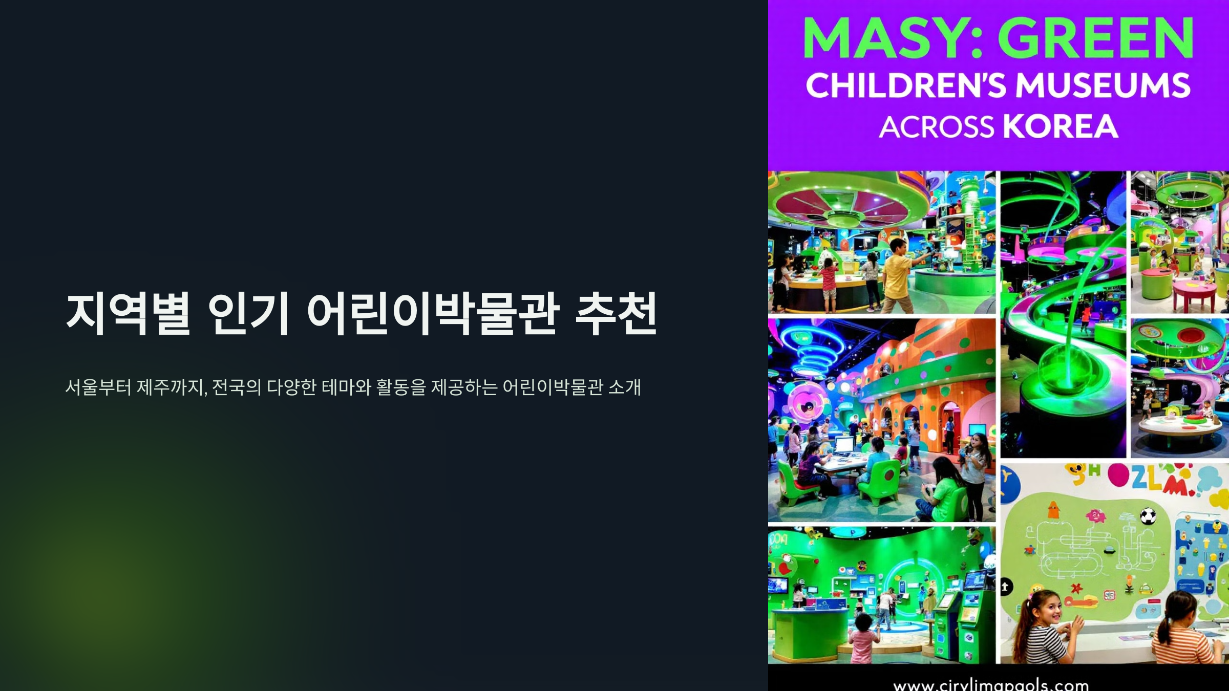 이번 가이드는 서울의 대규모 어린이박물관부터 지방의 소규모 체험관까지 소개할게요. 가족이 함께 방문할 수 있는 명소를 살펴보고, 각 지역의 추천 이유와 주요 특징도 함께 알려드릴게요. 준비되셨나요? 바로 시작해 볼게요!