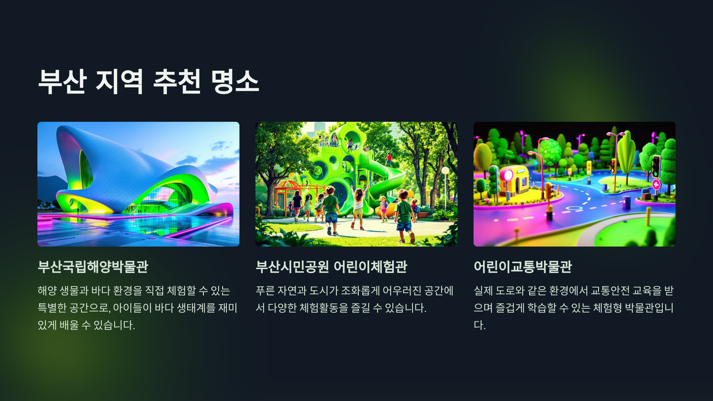 부산의 어린이박물관들은 바다와 연관된 테마가 많고, 도시의 특성을 잘 살린 곳들이라 색다른 경험을 제공한답니다. 부산 여행 시 꼭 체크해보세요!