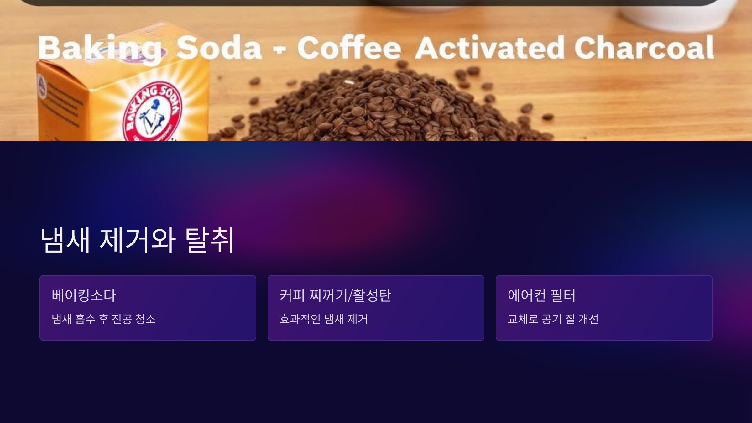 탈취제를 사용하거나 베이킹소다와 활성탄을 활용하세요.