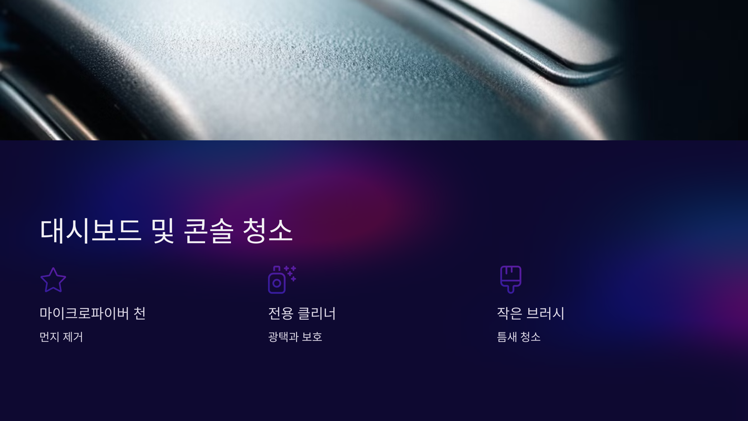 부드러운 마이크로파이버 천으로 먼지를 제거하세요.