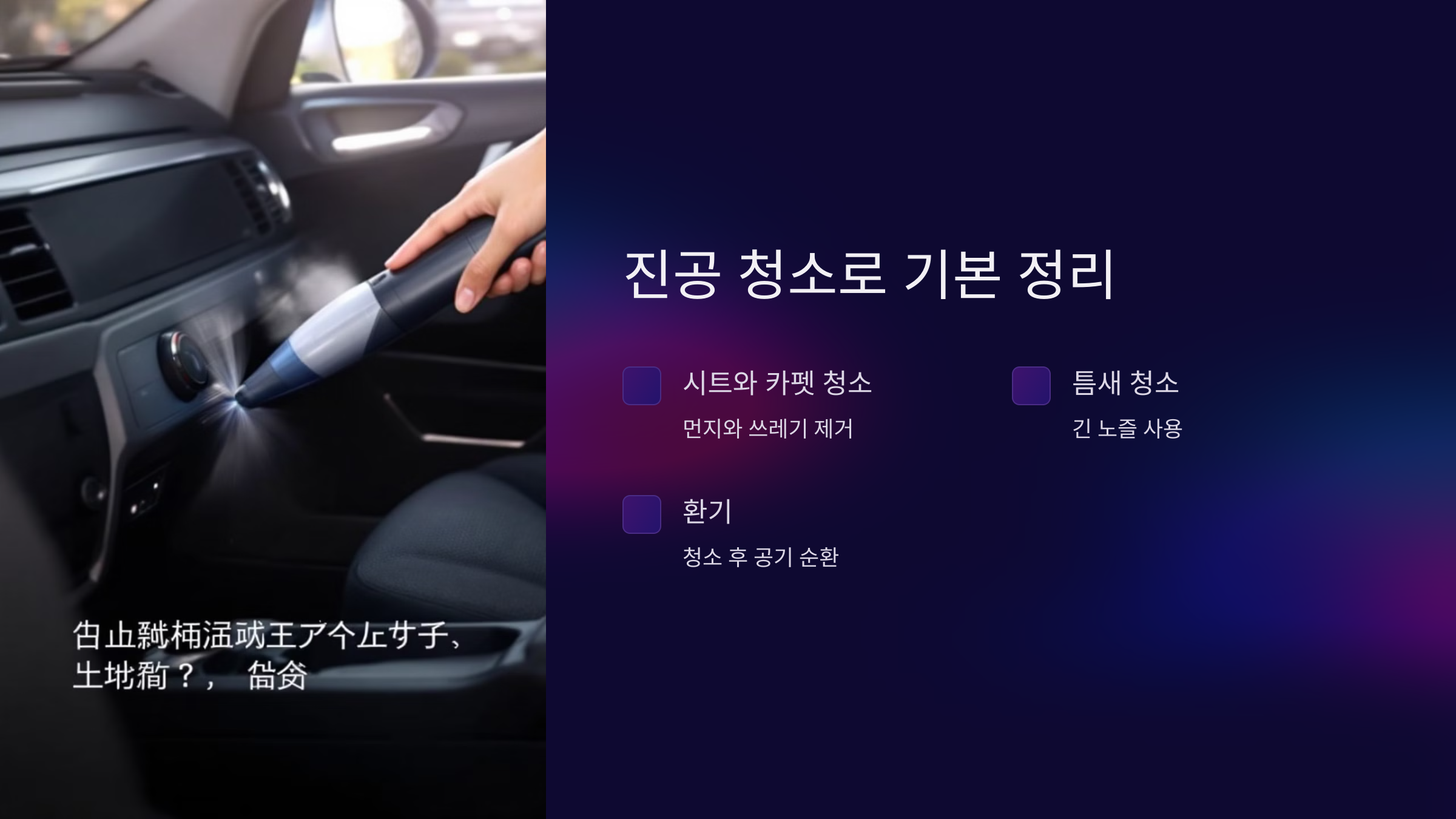 정기적인 진공 청소는 차량 내부를 깨끗하게 유지하는 기본 단계입니다.