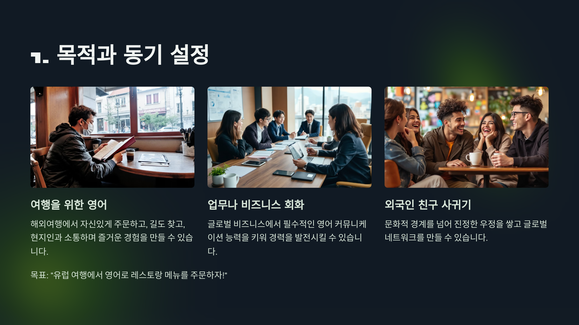 1. 목적과 동기 설정: 왜 영어를 배우고 싶으신가요? 🎯