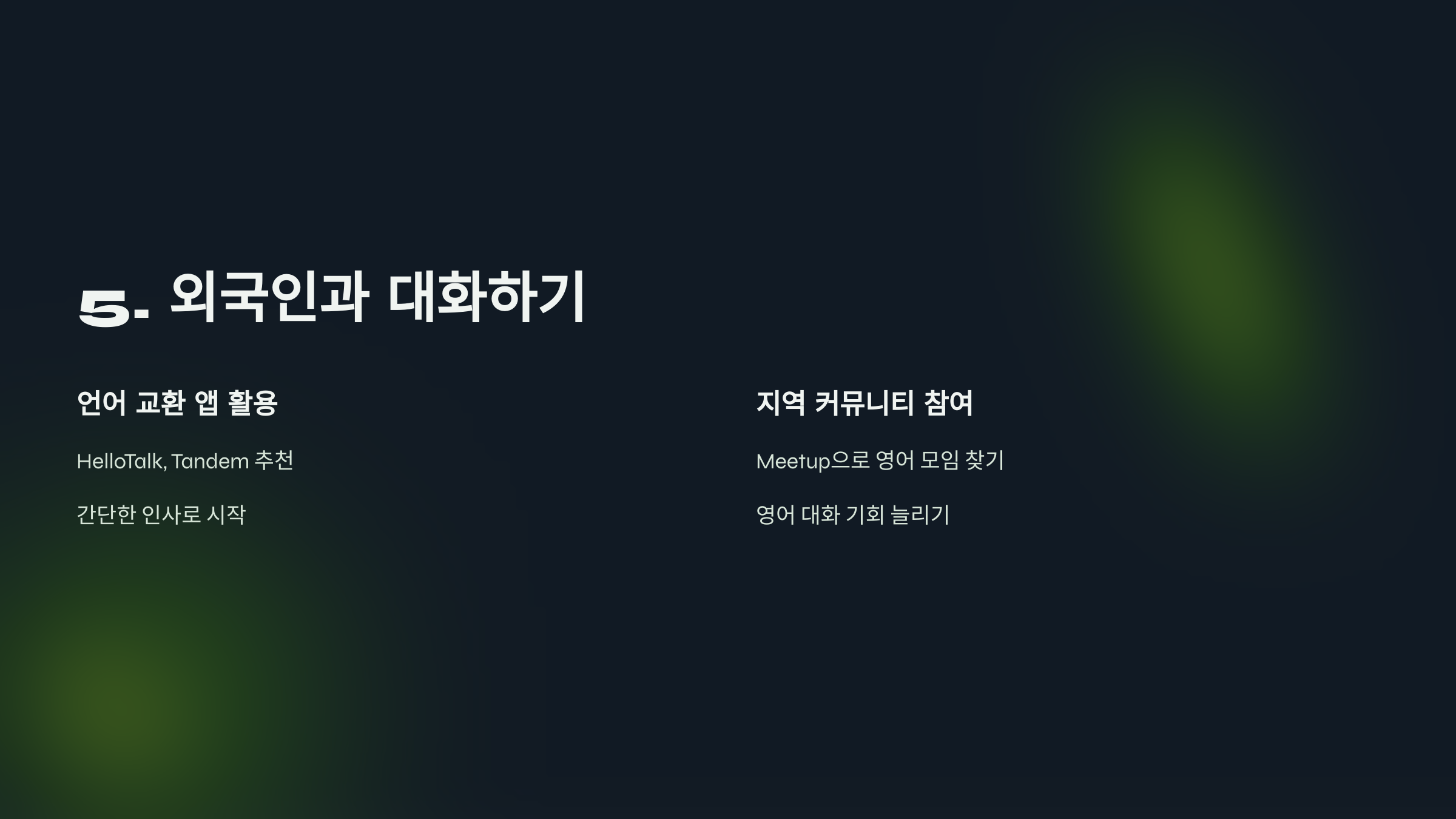 - 영어로 대화할 수 있는 기회를 늘려보세요.