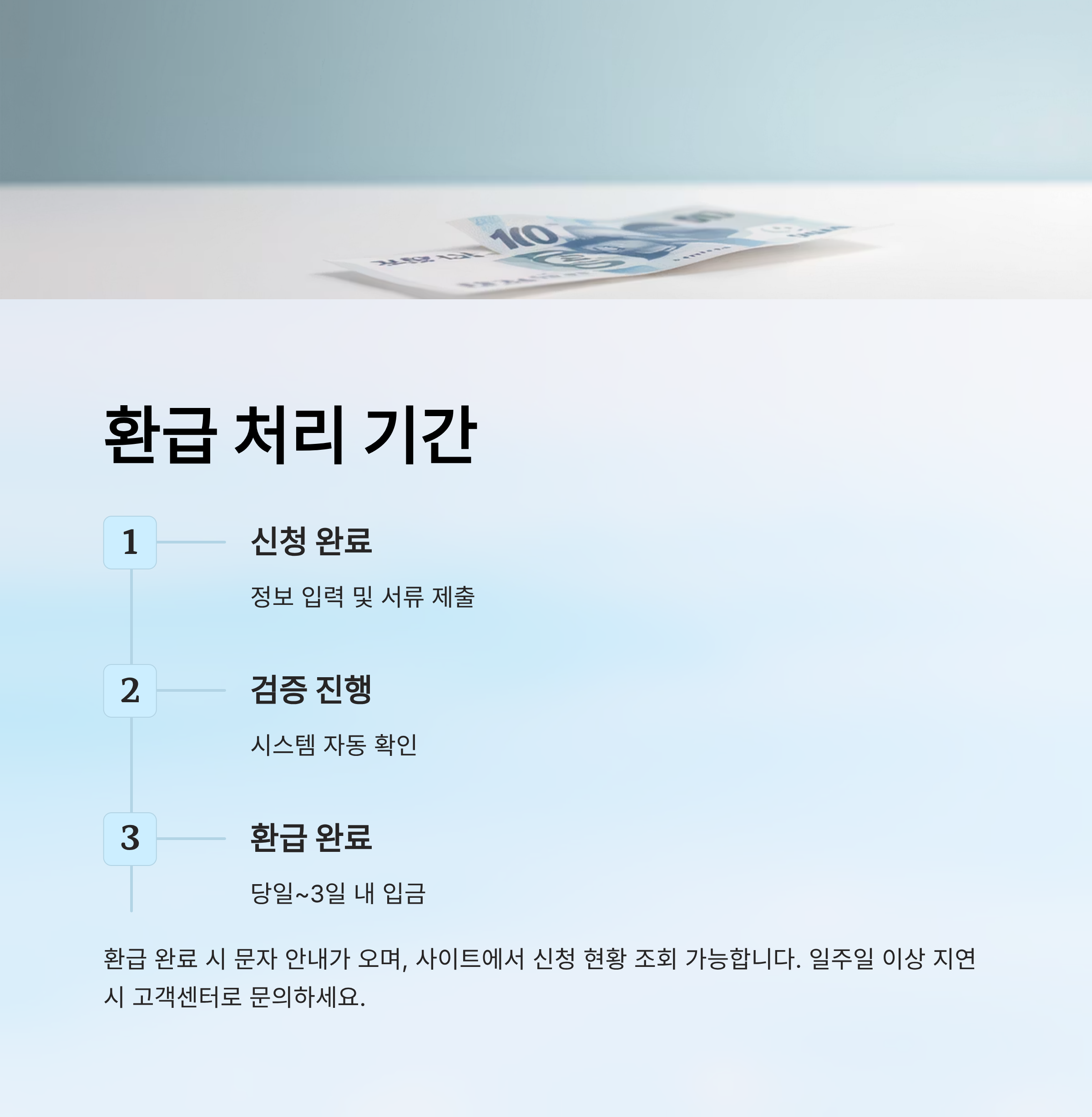 환급 신청 후 처리 기간은 보통 빠르면 당일, 늦어도 3일 안에 완료돼요. 하지만 일부 서류 미비나 계좌번호 오류가 있으면 며칠 더 걸릴 수 있어요.
