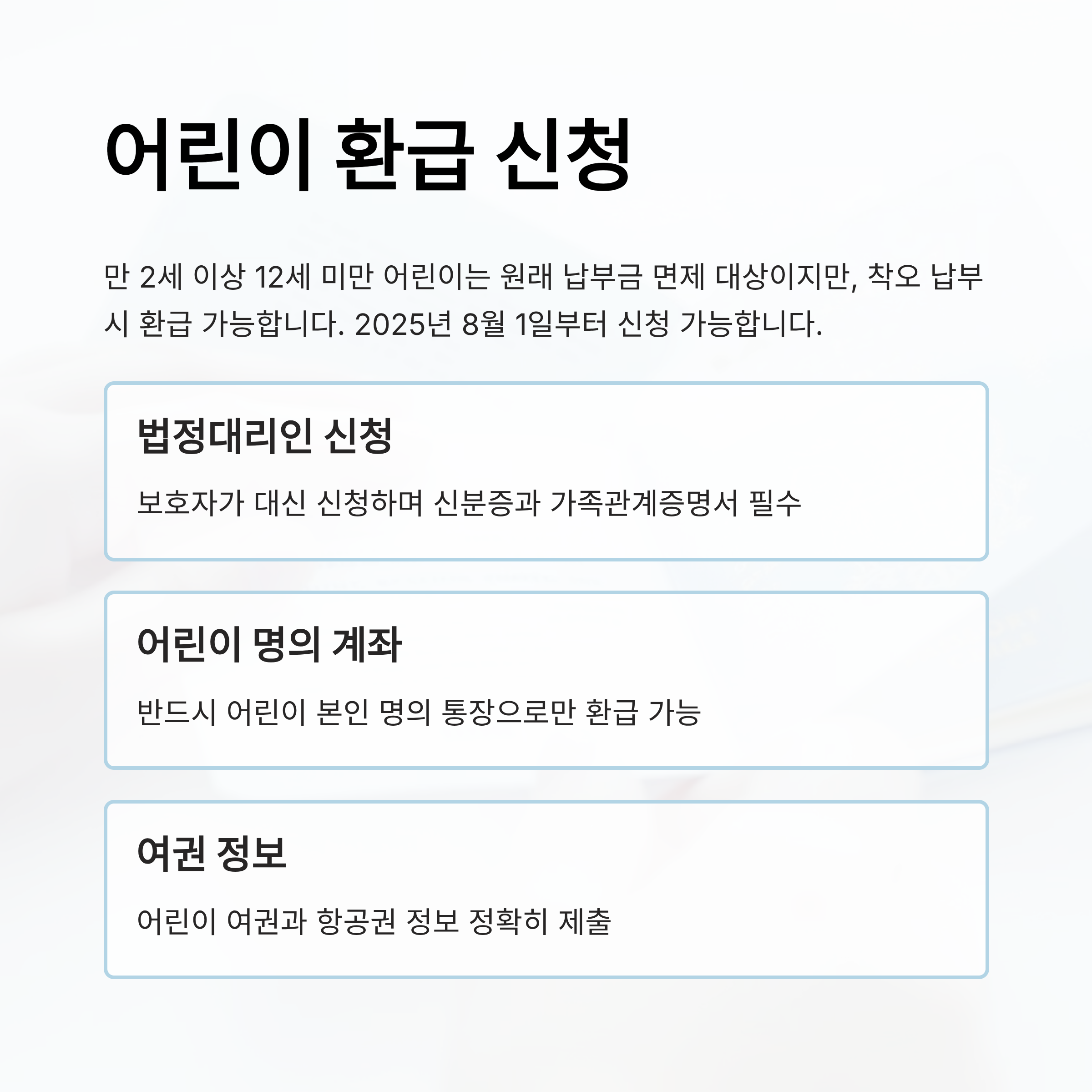 2025년 8월 1일부터 어린이에 대한 환급 신청이 가능해졌어요. 신청은 법정대리인(보통 부모님)이 대신 해야 하고, 보호자 신분증과 가족관계증명서가 필요해요.