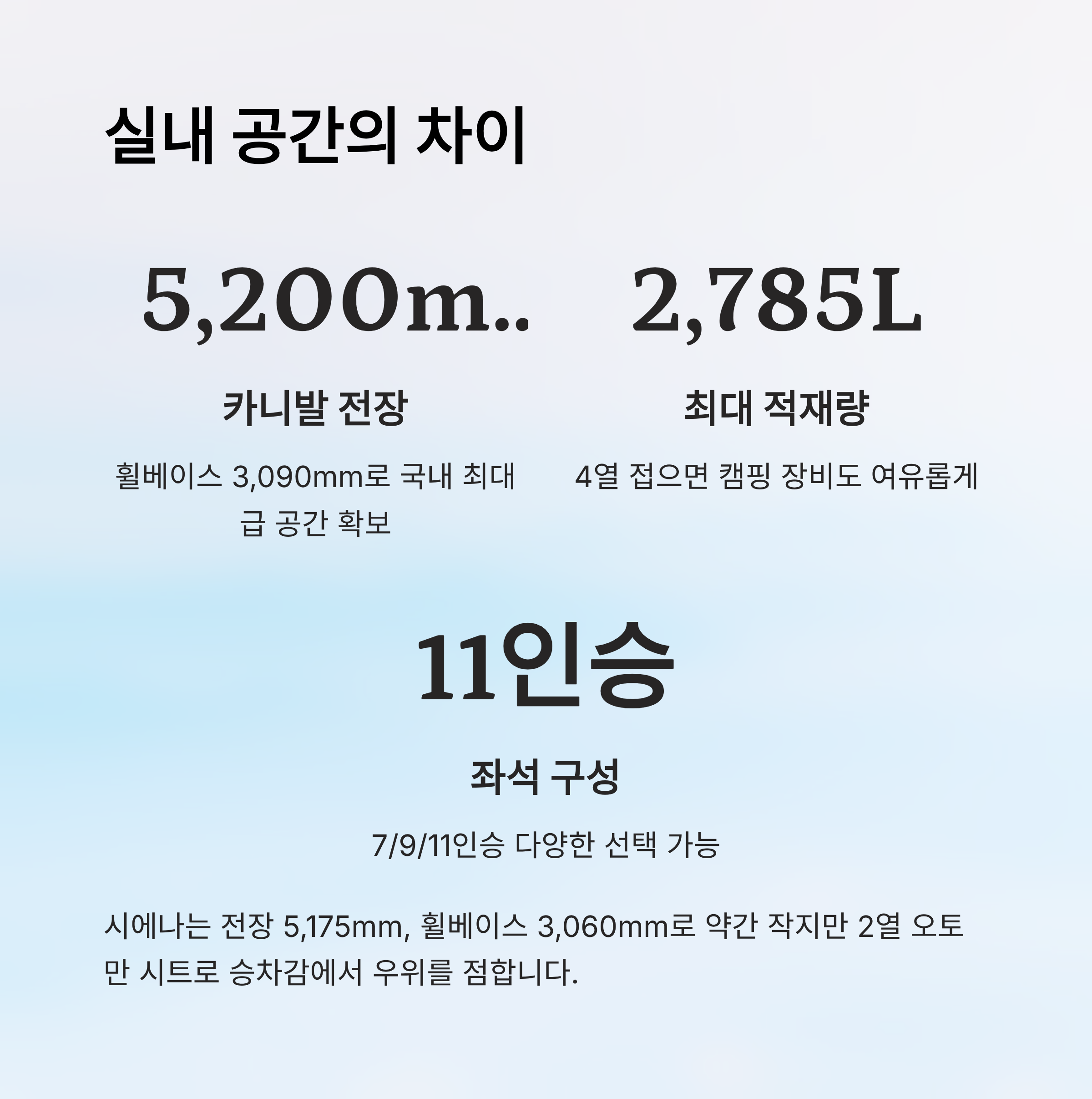 전장/휠베이스 5,200mm / 3,090mm 5,175mm / 3,060mm