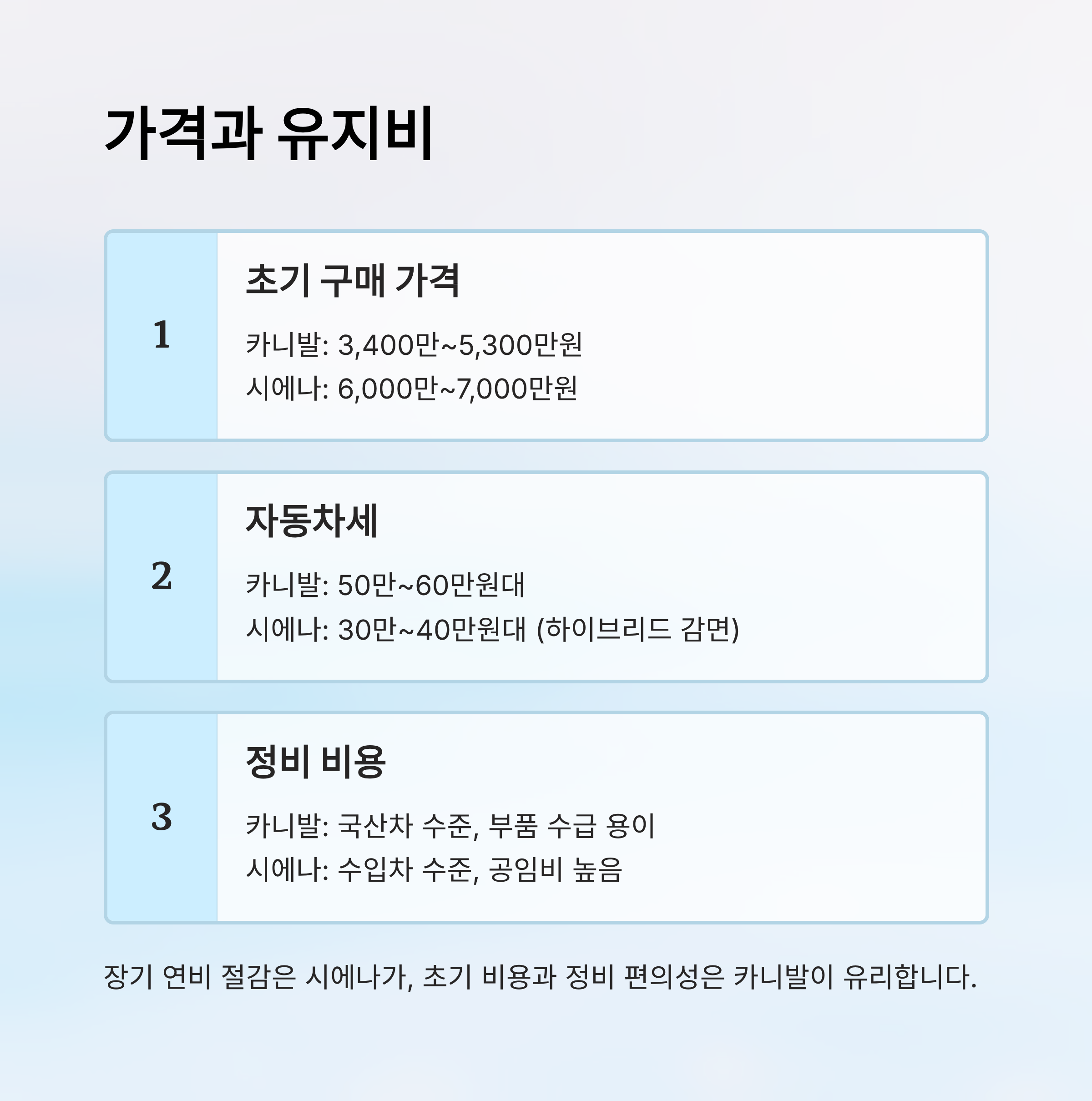 💰 가격 및 유지비 비교표