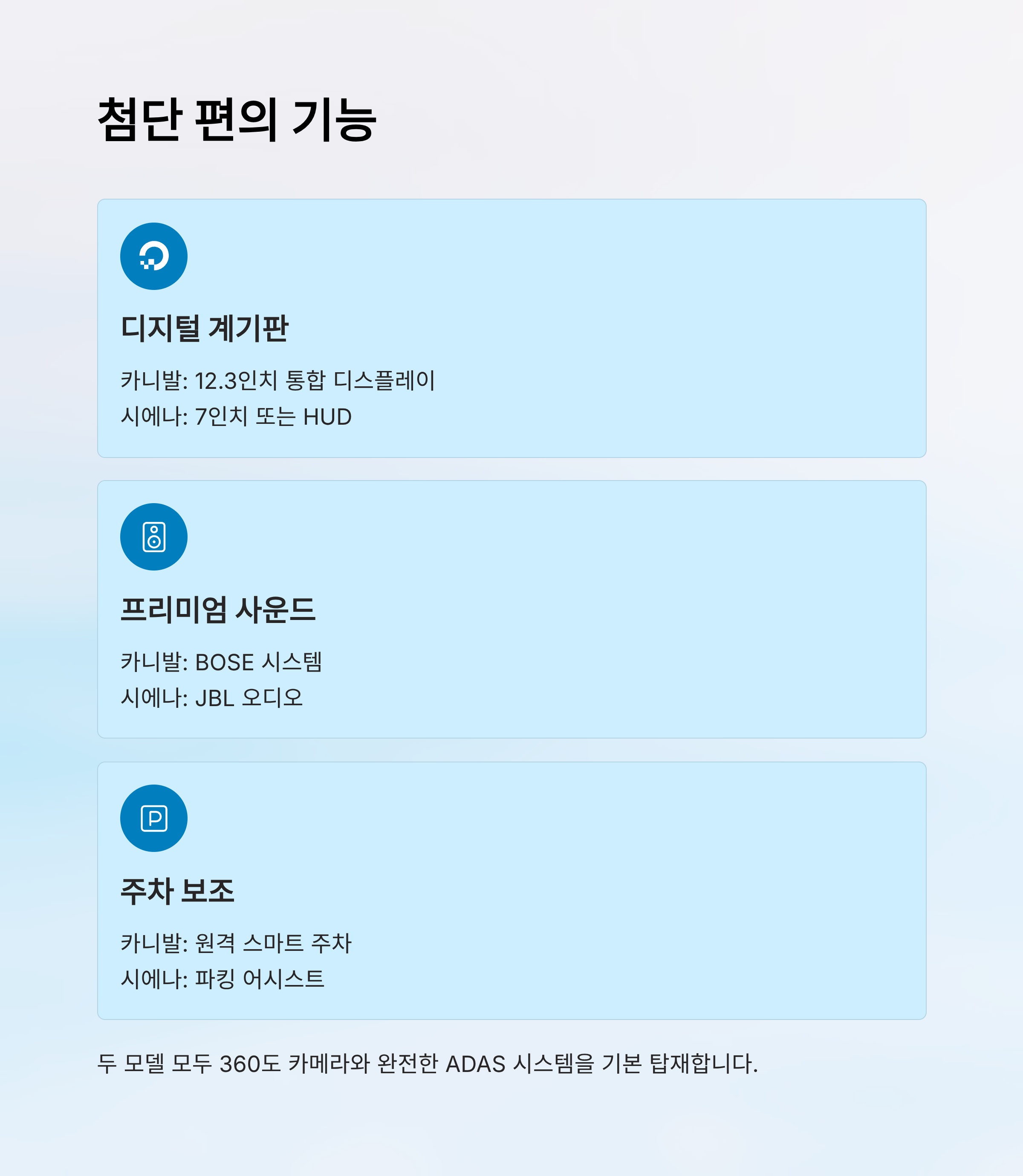 | 주차 보조 | 원격 스마트 주차 | 파킹 어시스트 |