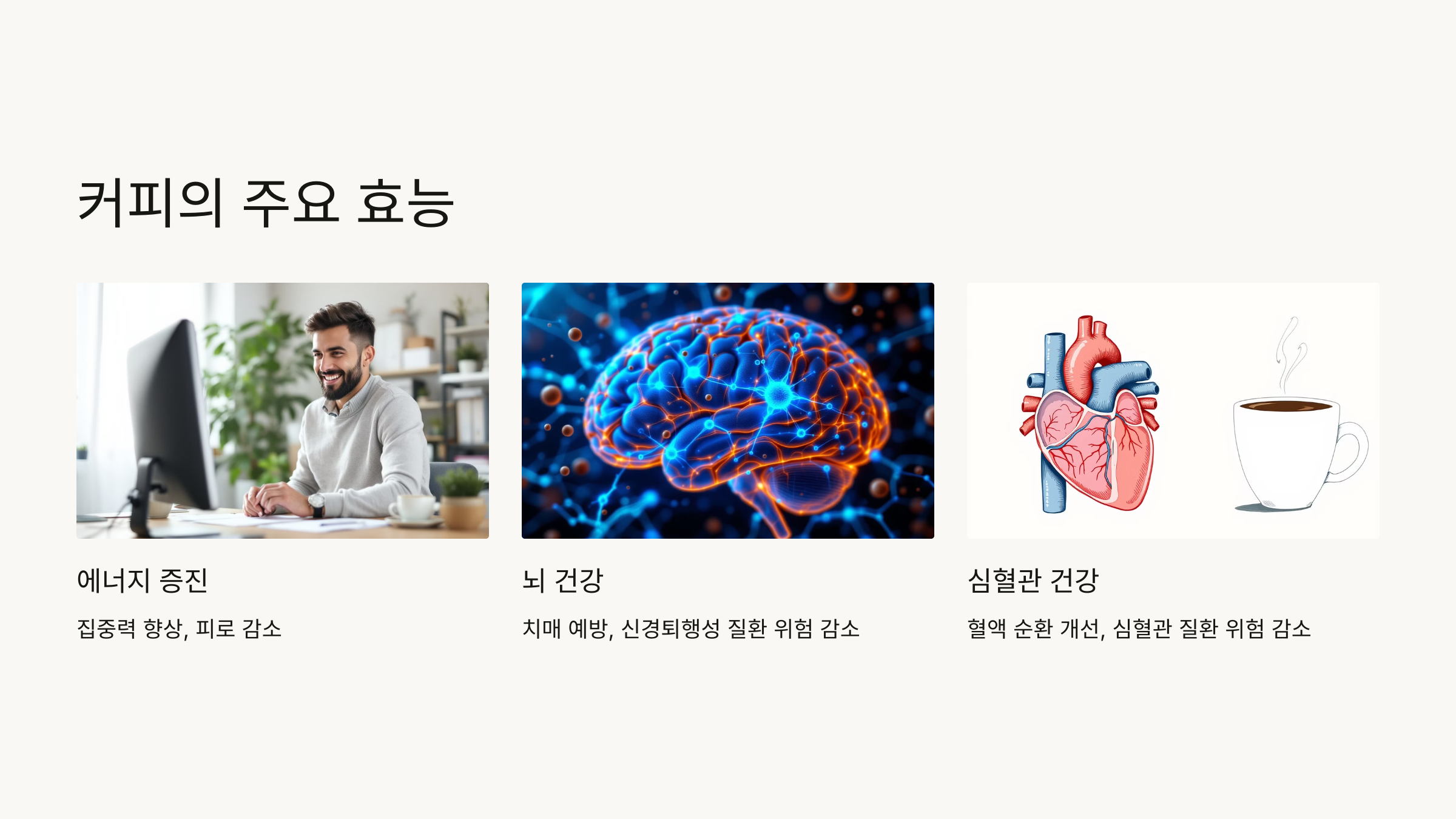 커피는 단순히 기분을 좋게 하는 것 이상으로, 다양한 건강상 이점을 제공합니다. 다음은 커피가 우리 몸에 주는 주요 효능입니다.