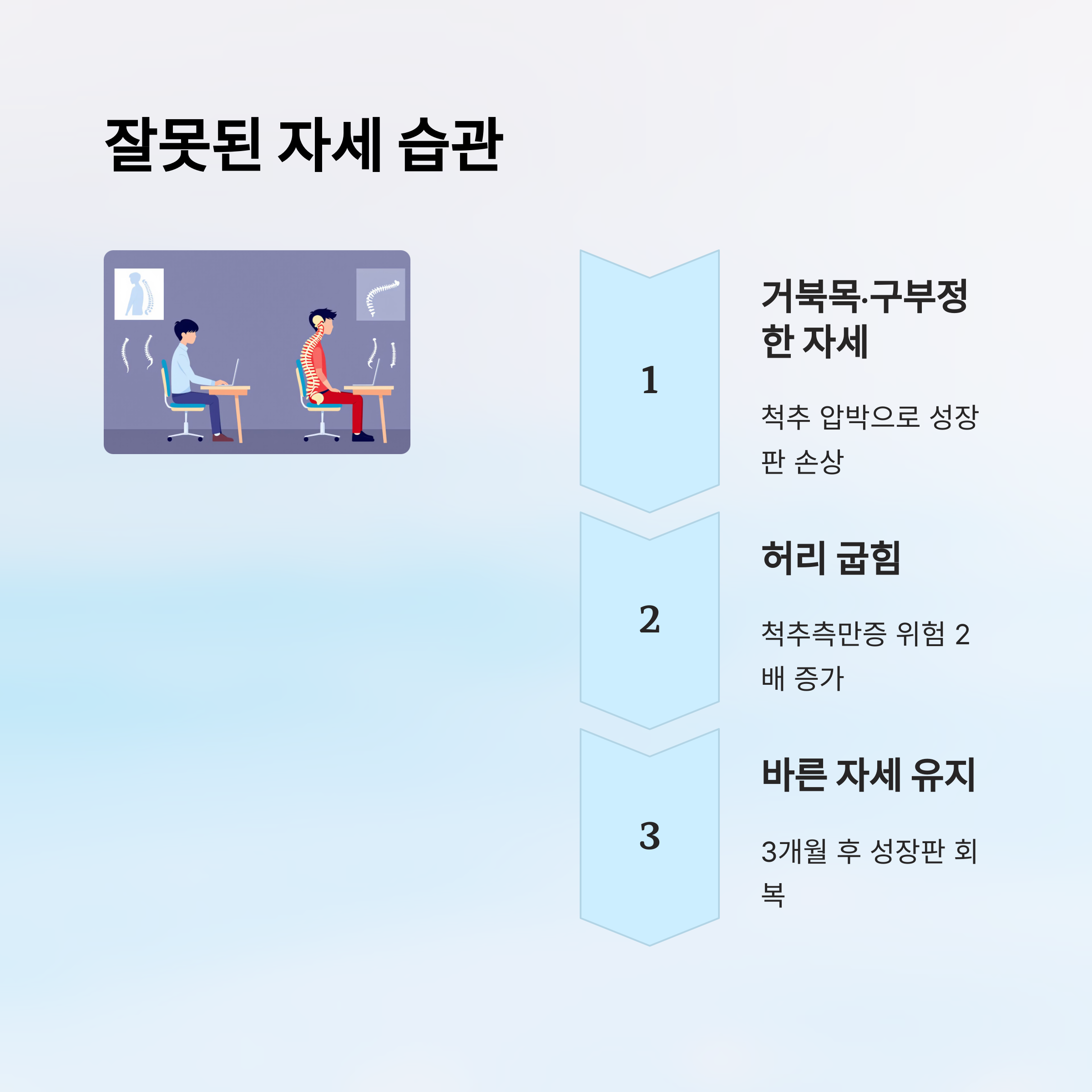 구부정한 등 | 척추 성장 방해 | 허리 펴고 앉기 |