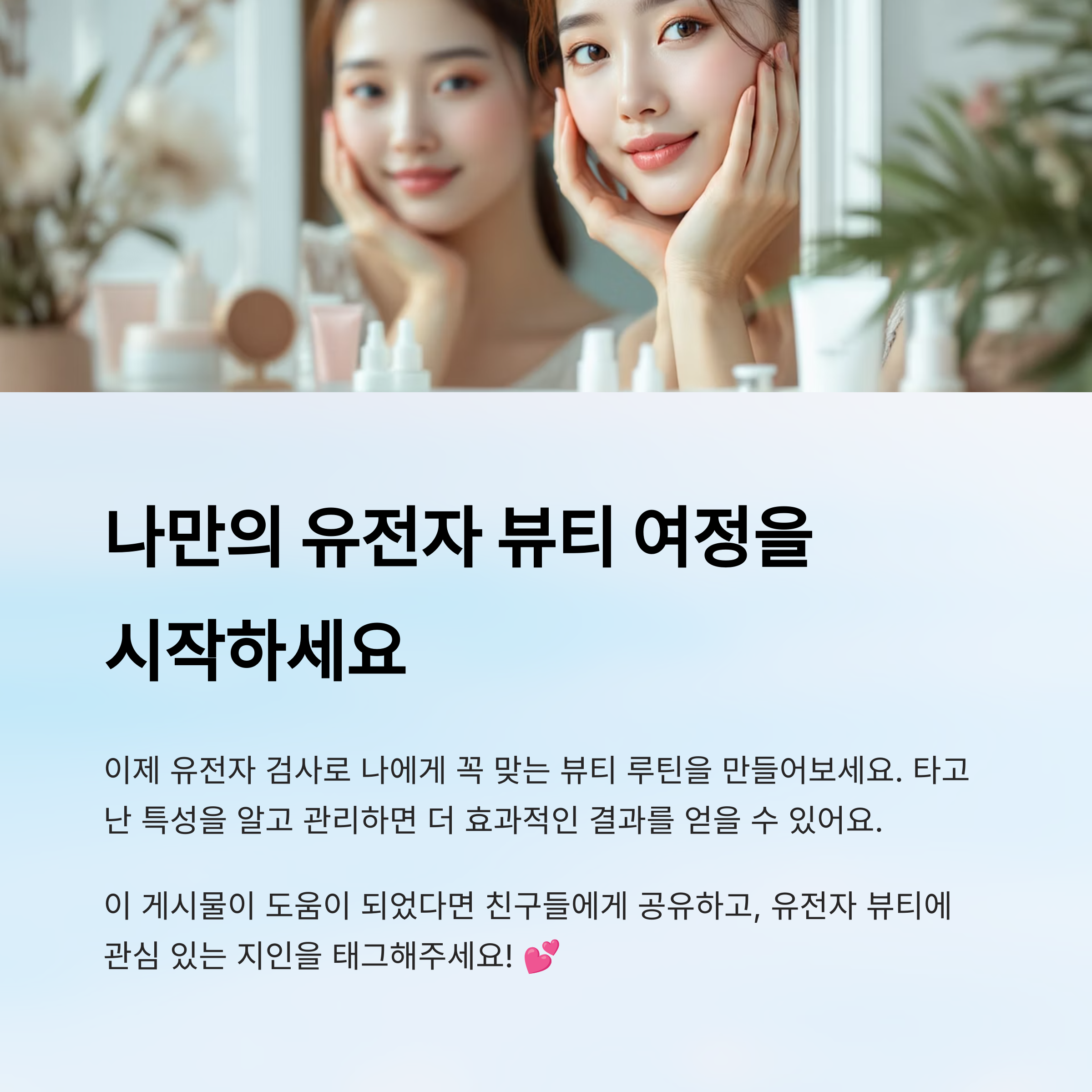 그럼 지금부터, 유전자 기반 뷰티 관리가 왜 중요한지, 어떤 검사들이 있는지, 그리고 일상에서 어떻게 활용하면 좋은지 하나하나 재미있게 알려드릴게요! 💡