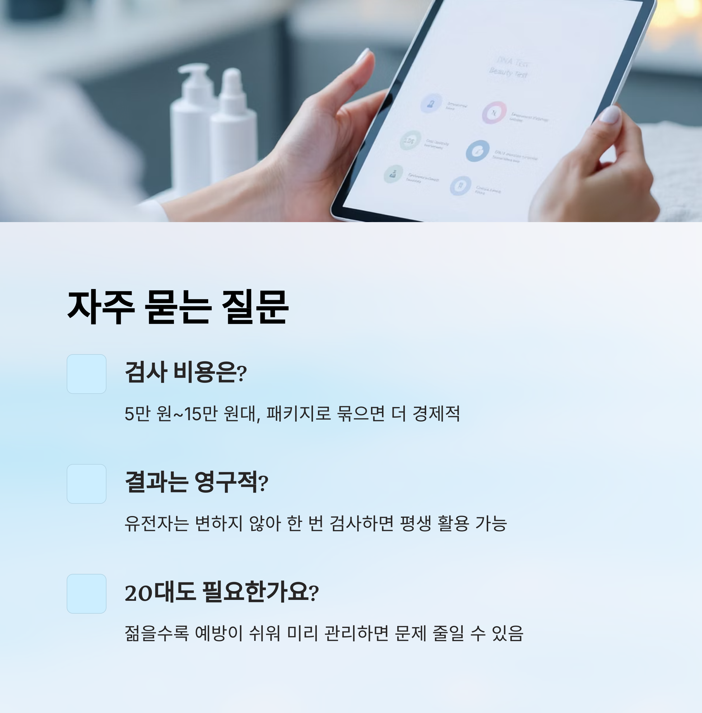 A8. 물론이죠! 젊을수록 예방이 쉬워요. 피부 노화나 탈모 유전자가 있다면 미리 관리해서 문제를 줄일 수 있어요. 20~30대의 뷰티 전략은 “선제적 관리”예요!