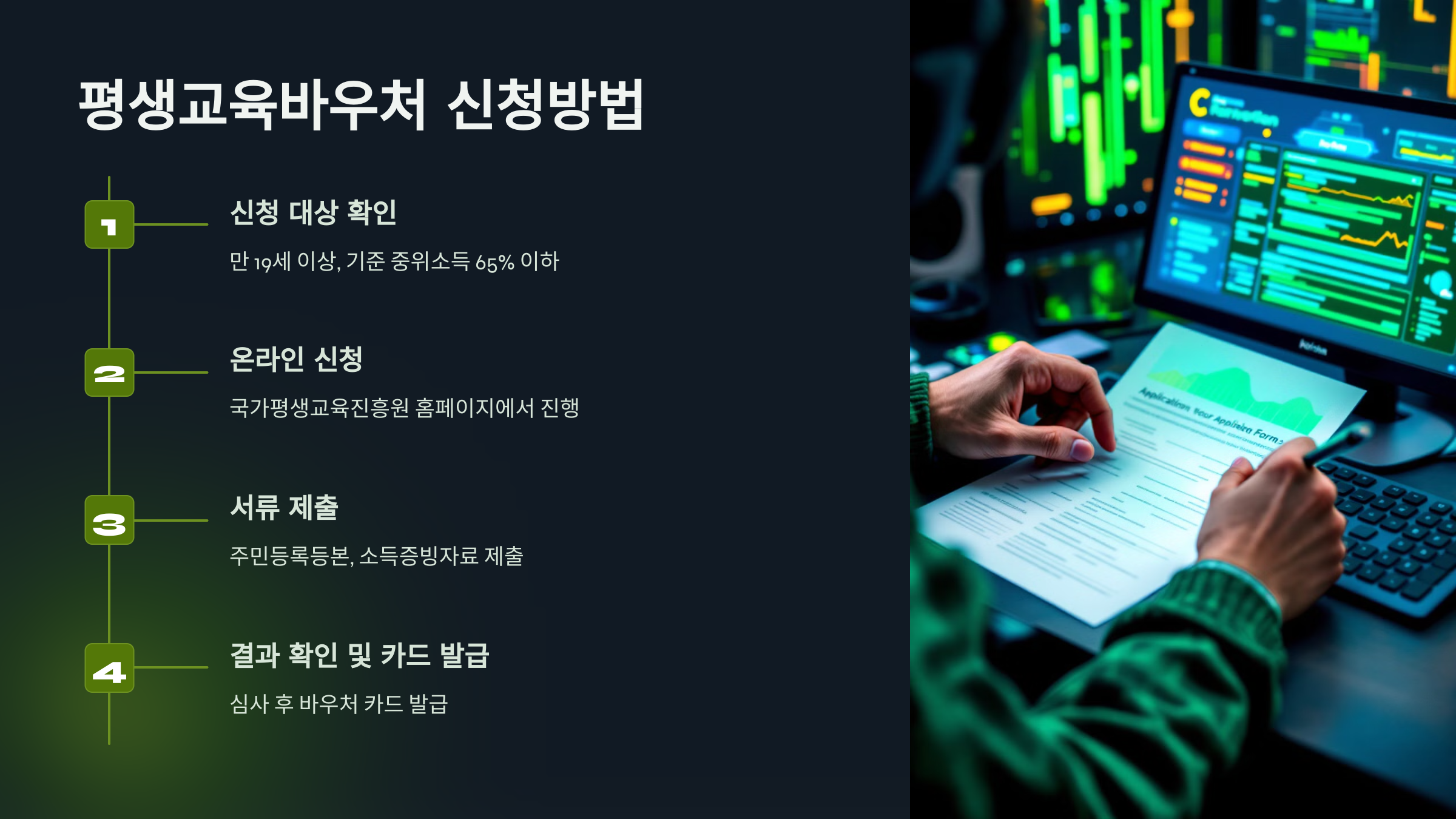 평생교육바우처는 정부에서 경제적으로 어려운 국민들에게 평생교육 기회를 제공하기 위해 지원하는 제도입니다. 이를 통해 다양한 교육과정을 수강할 수 있도록 연간 일정 금액을 지원받을 수 있어요.