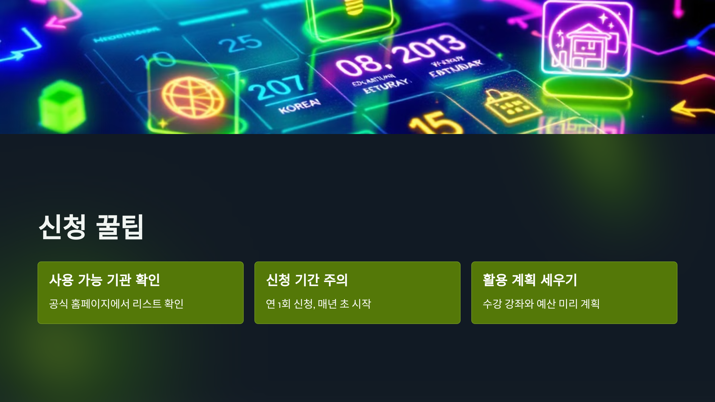 바우처는 연 1회 신청 가능합니다. 매년 초 신청이 시작되니 신청 기간을 놓치지 마세요. - 활용 계획 세우기