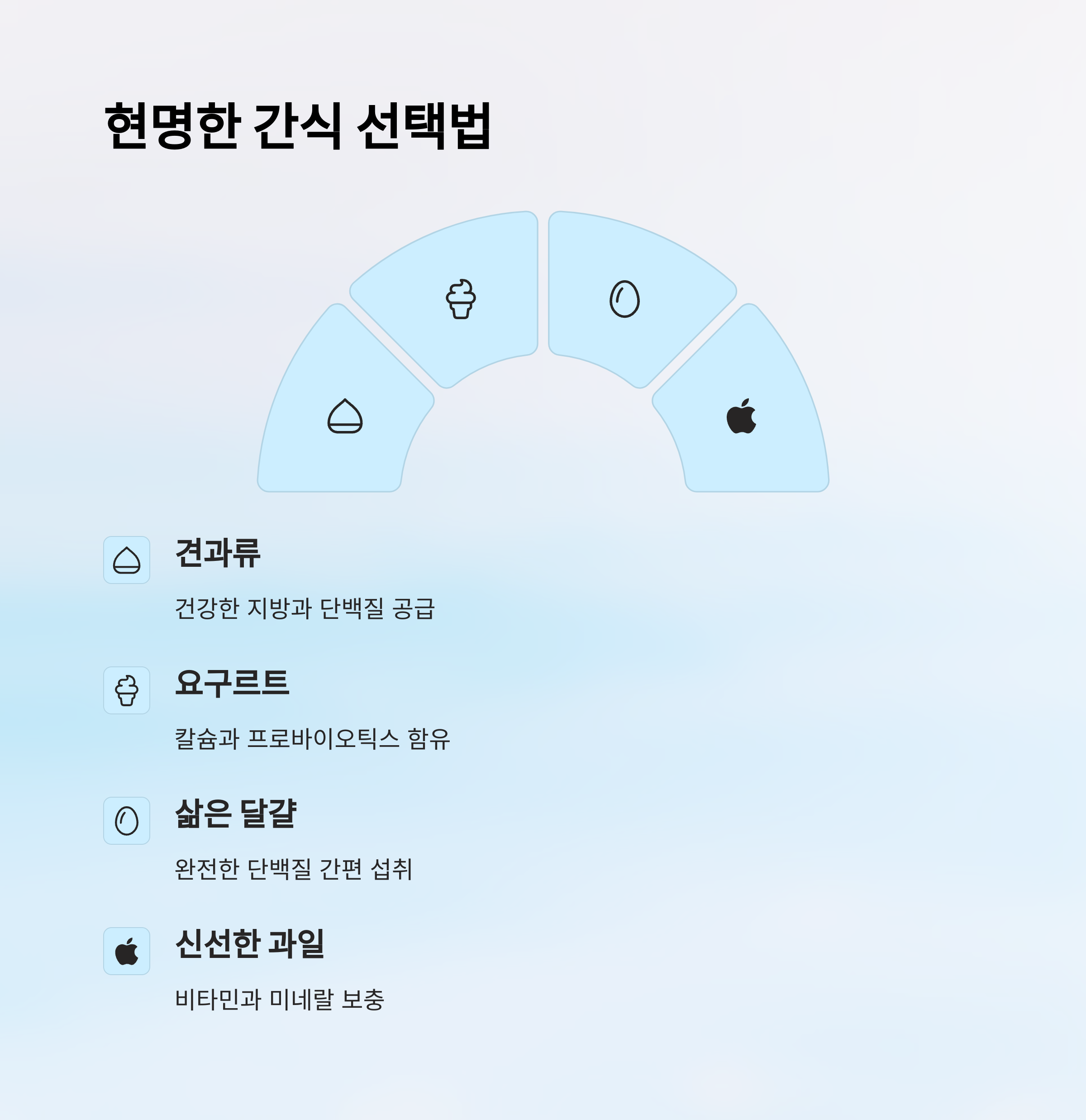 하지만 간식을 너무 자주, 너무 늦게 먹으면 본 식사에 영향을 주거나 수면을 방해할 수 있어요. 간식은 하루 1~2회, 식사와 식사 사이에 먹고 자기 전 2시간 이내에는 피하는 게 좋아요.
