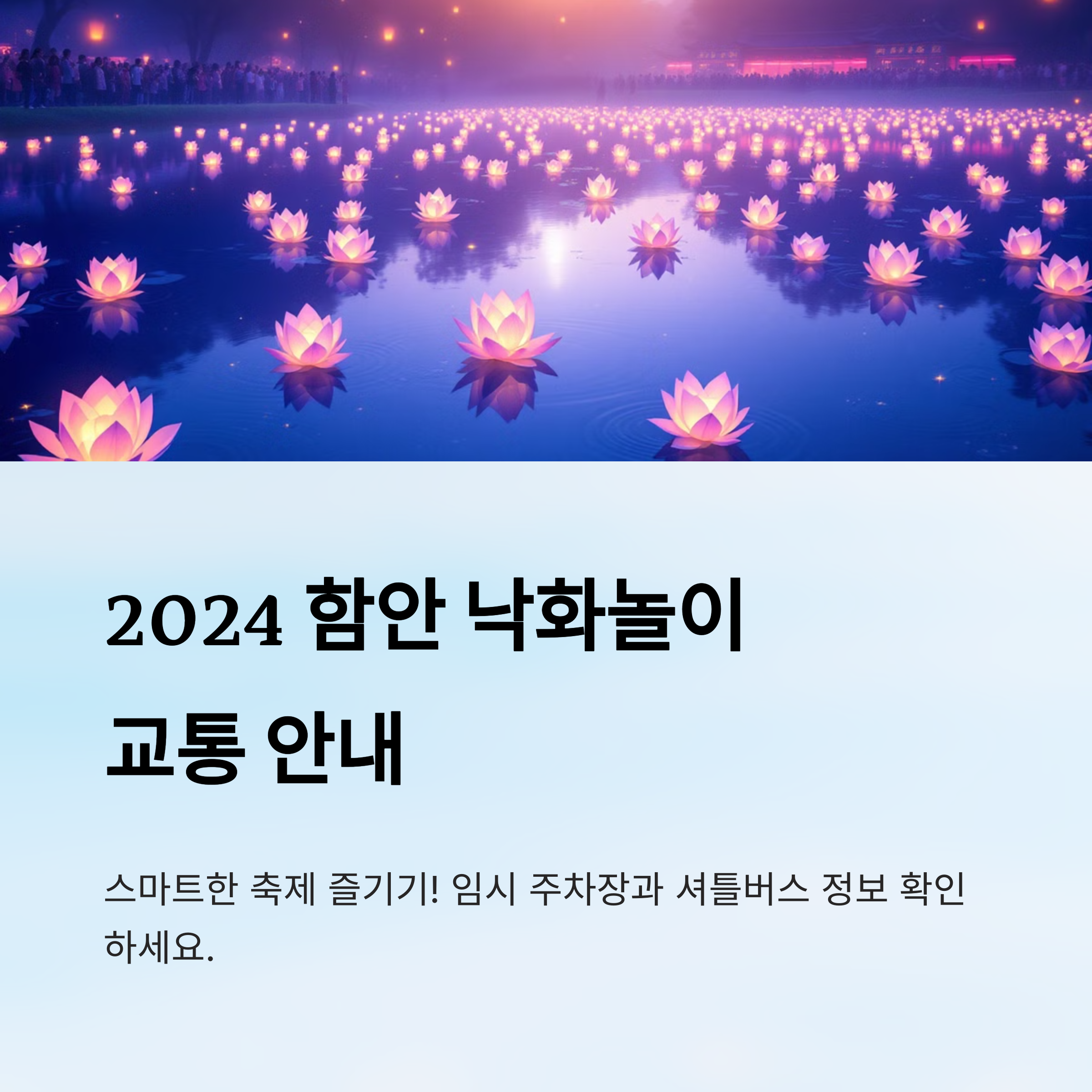 함안 낙화놀이는 매년 수천 명이 방문하는 인기 전통 축제예요. 특히 조용하고 고즈넉한 무진정 앞에서 펼쳐지는 불빛 쇼는 전국 어디서도 볼 수 없는 특별한 장면이라 많은 관람객이 찾고 있어요. 하지만 축제 당일에는 차량이 몰리면서 교통 혼잡이 심각해지는 만큼 ‘주차장 정보’와 ‘셔틀버스 이용법’을 미리 알고 가는 게 정말 중요하답니다.