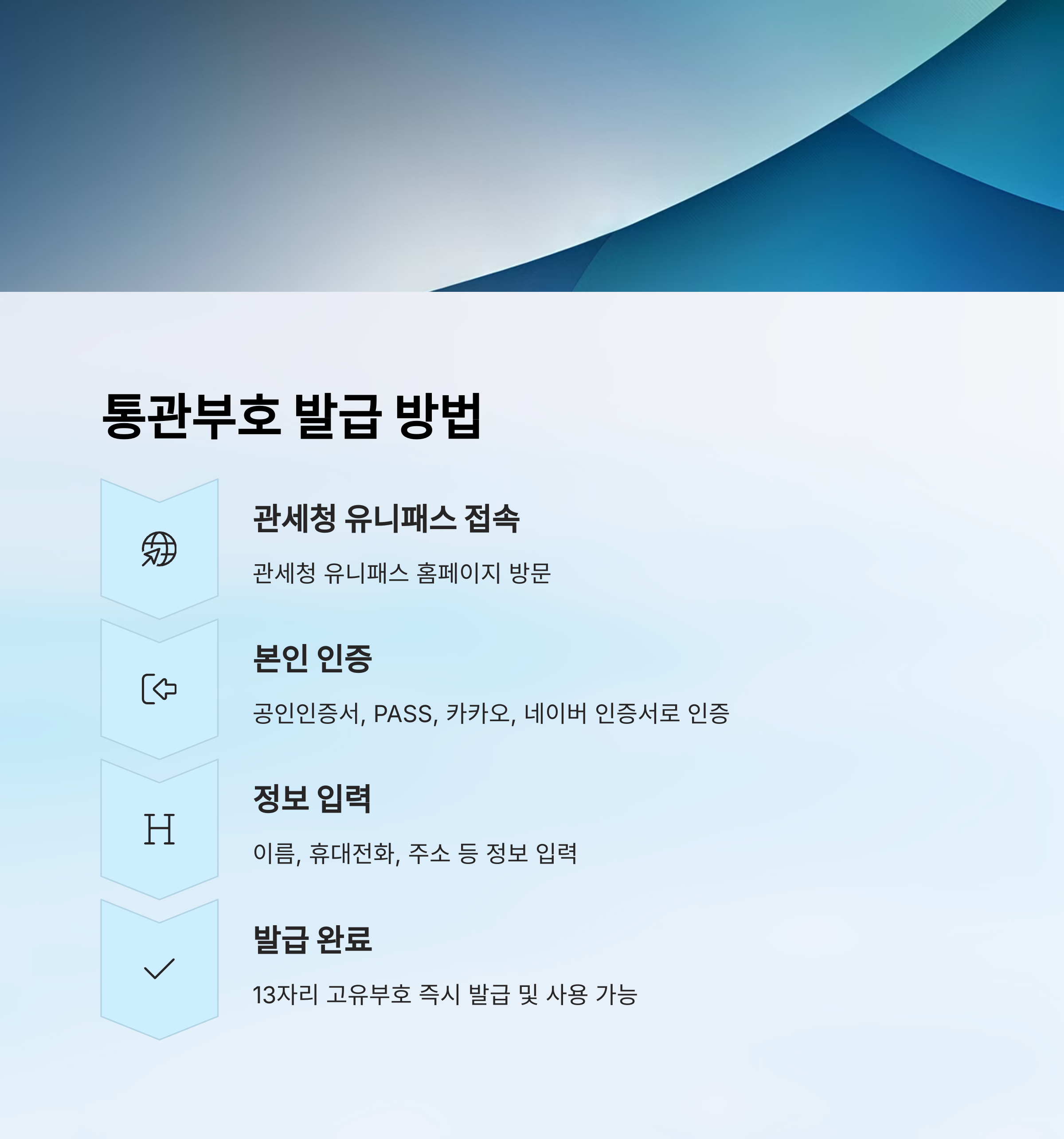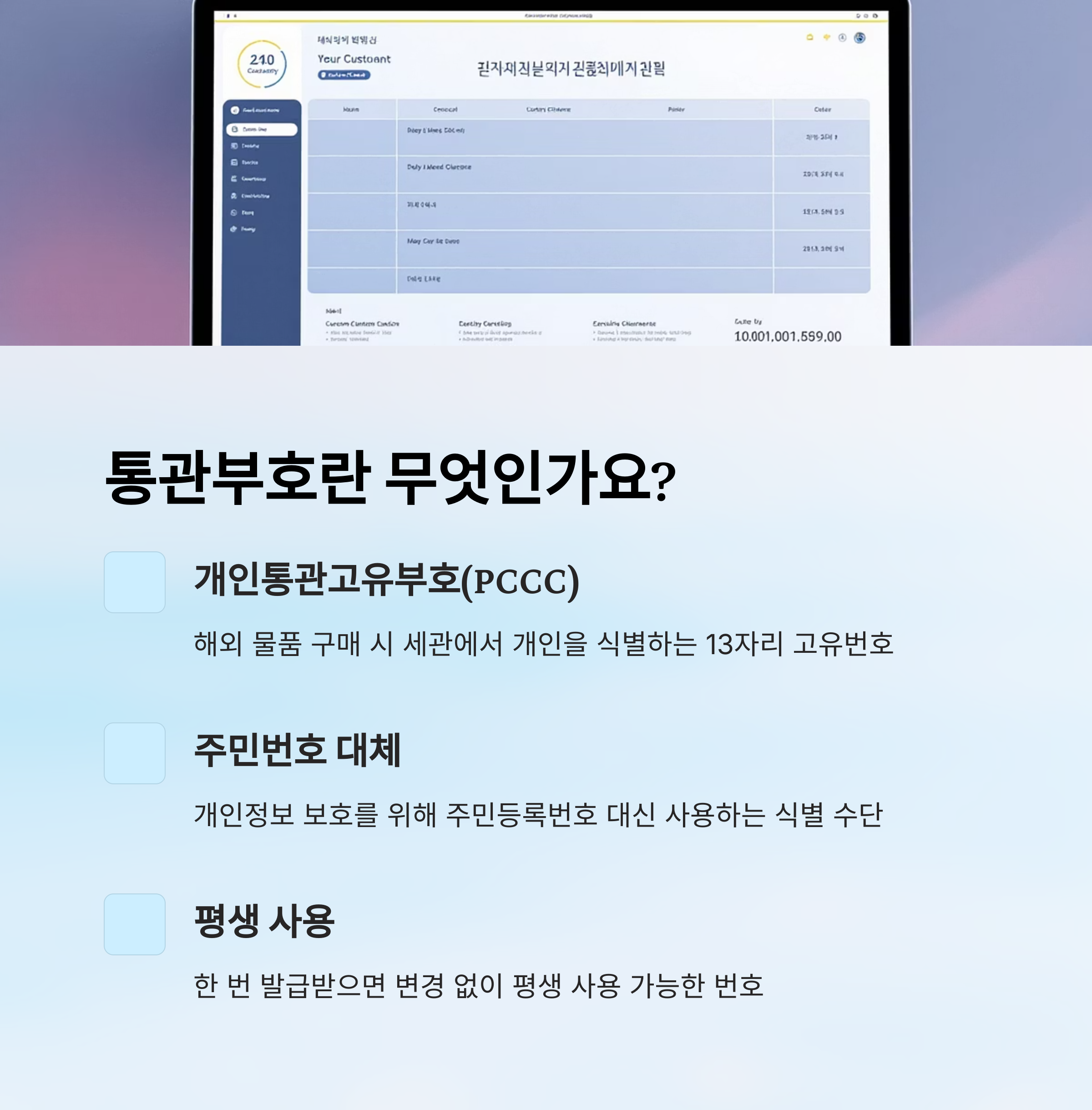 통관부호는 개인통관고유부호(PCCC)라고 불리며, 해외에서 물품을 구매했을 때 세관에서 개인을 식별하기 위해 사용하는 일종의 고유 식별번호예요. 관세청에서 제공하는 시스템을 통해 간편하게 발급받을 수 있죠.