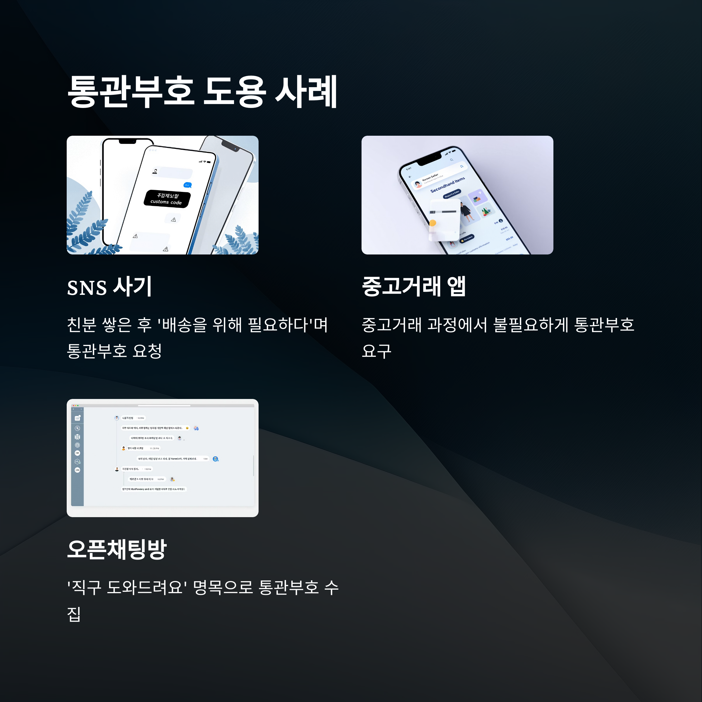 대표적인 사례로는 SNS를 통해 친분을 쌓은 후 ‘배송을 위해 필요하다’며 통관부호를 요청하고, 이를 이용해 명품이나 전자제품을 불법 수입하는 경우가 있어요. 문제는 이 모든 책임이 부호 주인에게 돌아갈 수 있다는 점이에요.