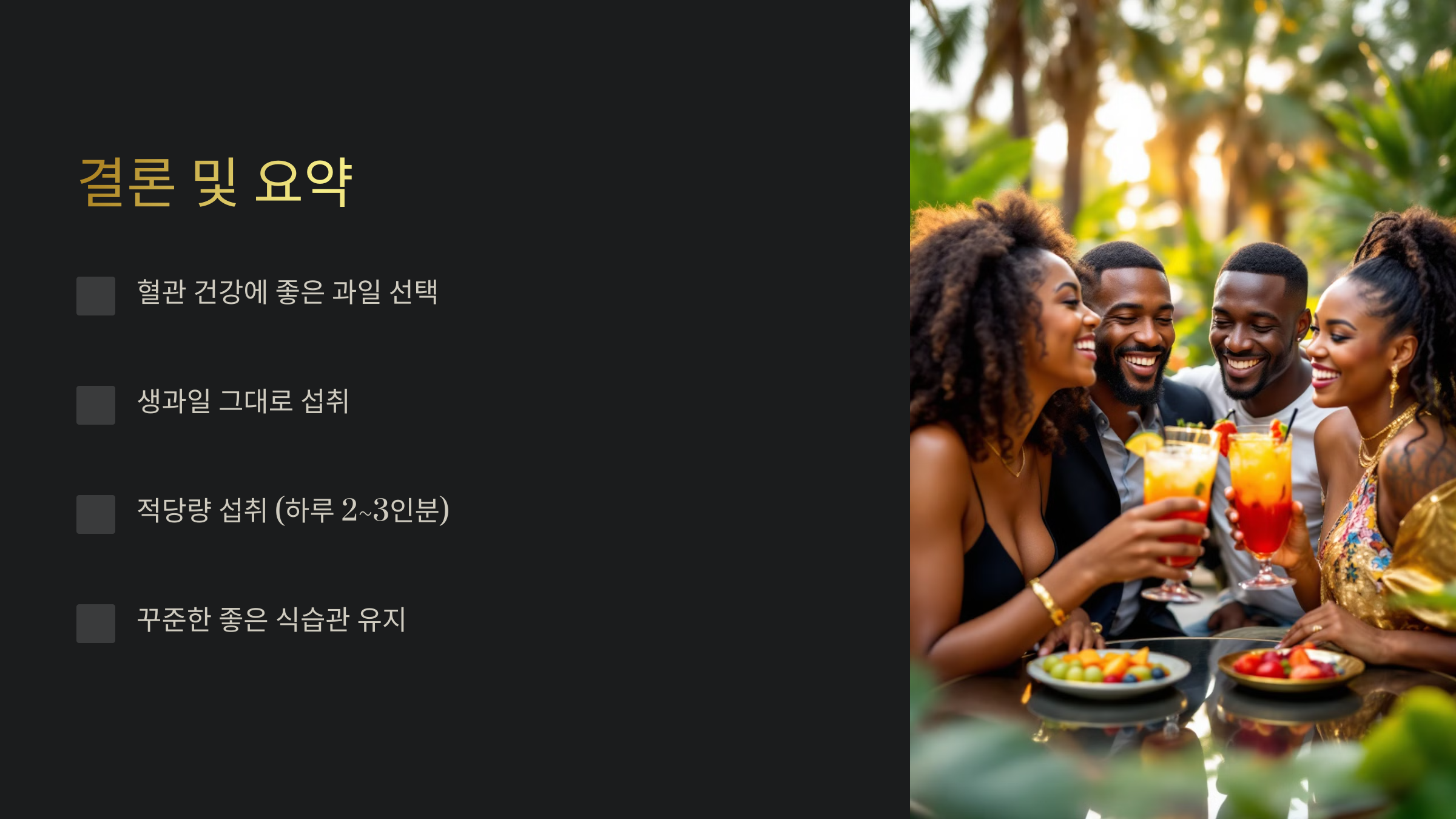 혈관 건강을 위한 올바른 과일 섭취 방법을 알고 나니 도움이 되셨나요? 😊 이제 마무리 인사와 함께 요약을 진행할게요!