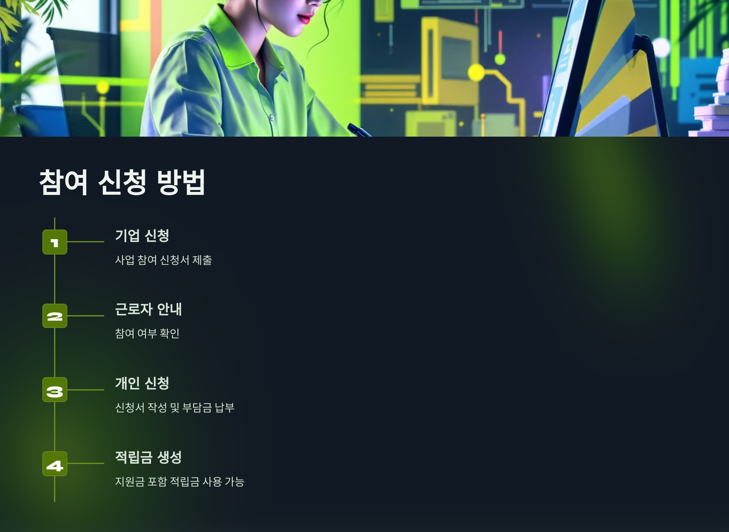A: 기업이 먼저 신청한 후, 근로자가 개인 부담금을 납부하면 참여할 수 있습니다.